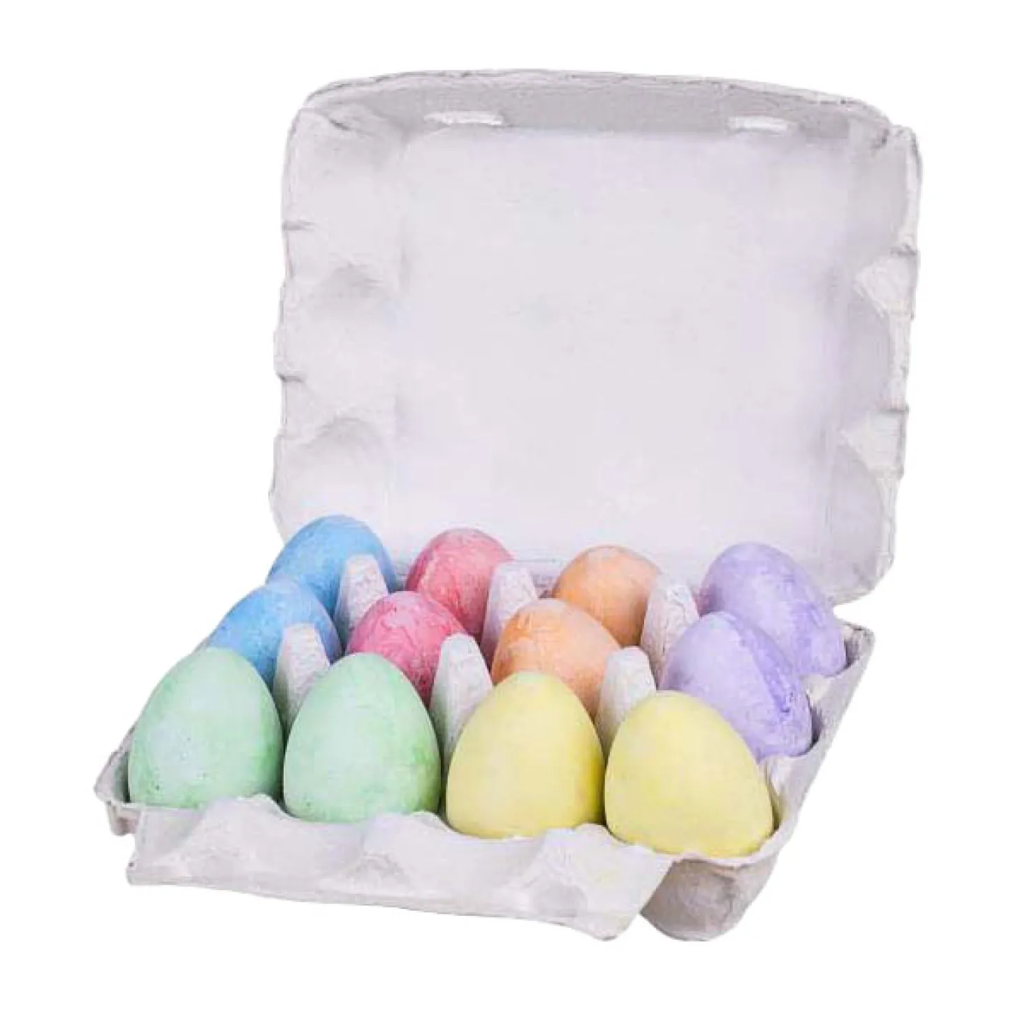 In de eierdoos zitten 12 stoepkrijt eieren. Geschikt voor kinderen vanaf 2 jaar.