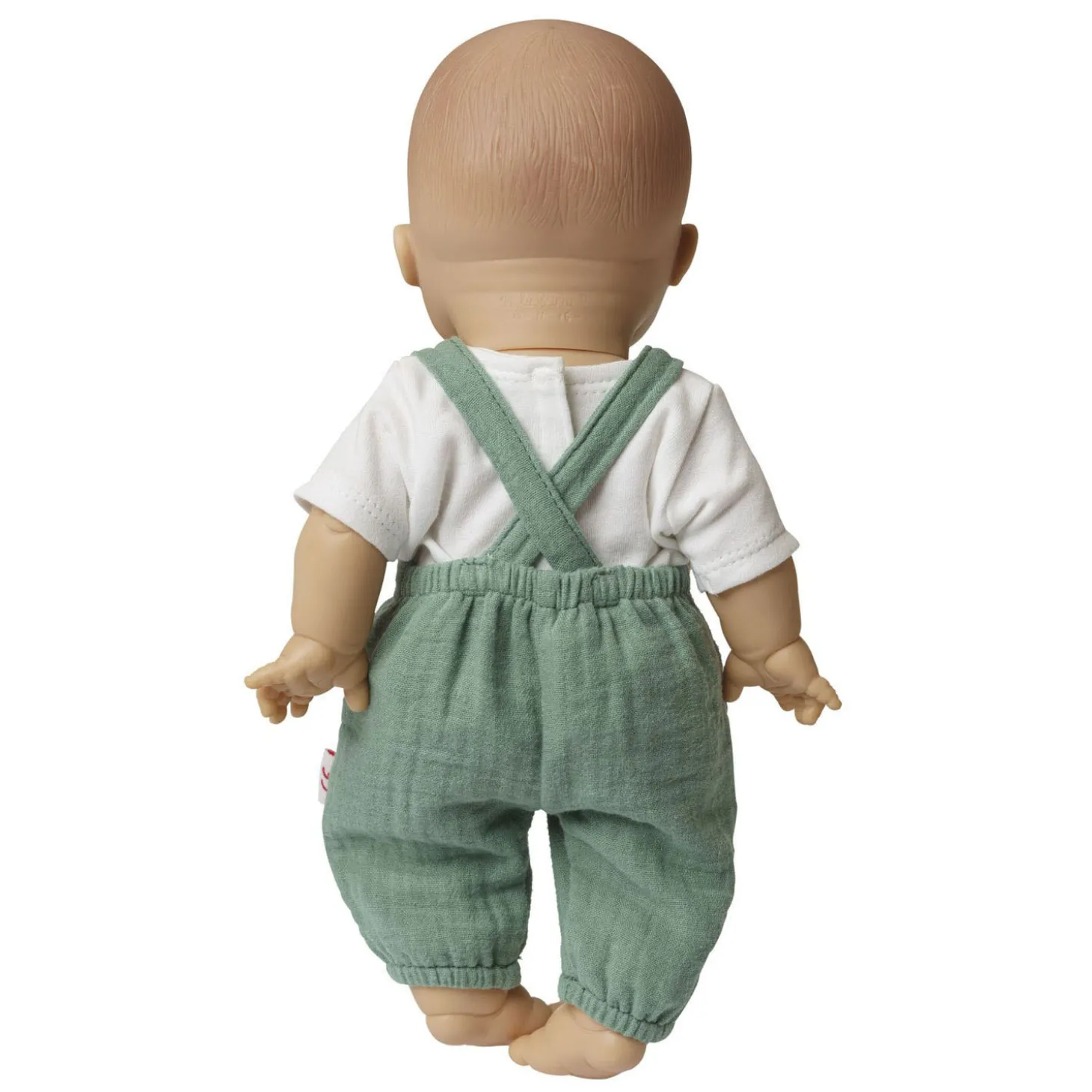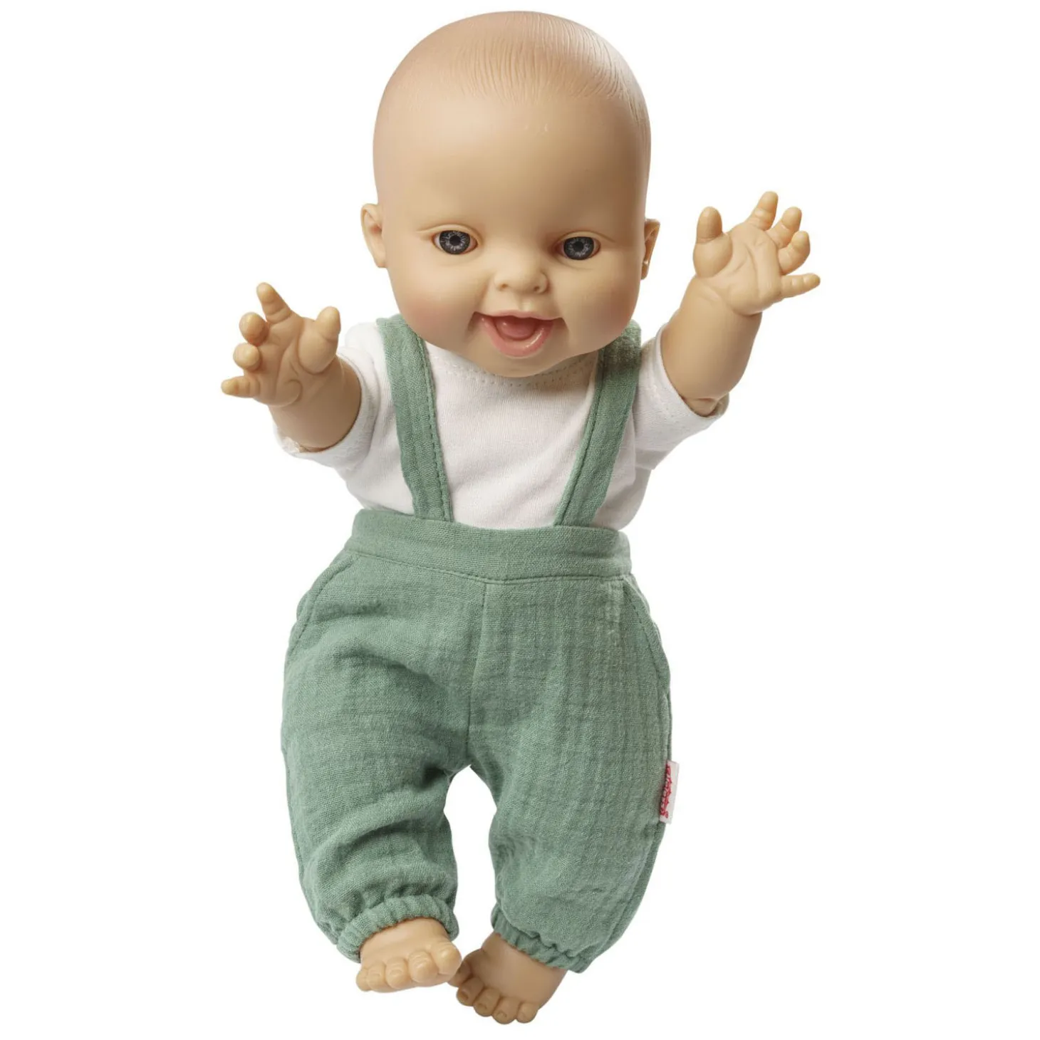 De zachte mousselinestof in zacht saliegroen is afkomstig van gecontroleerde biologische landbouw en zorgt voor een bijzonder comfortabele en natuurlijke speelervaring. Een vrolijke outfit voor jongens- en meisjespoppen die staat voor veilig en grenzeloos speelplezier.