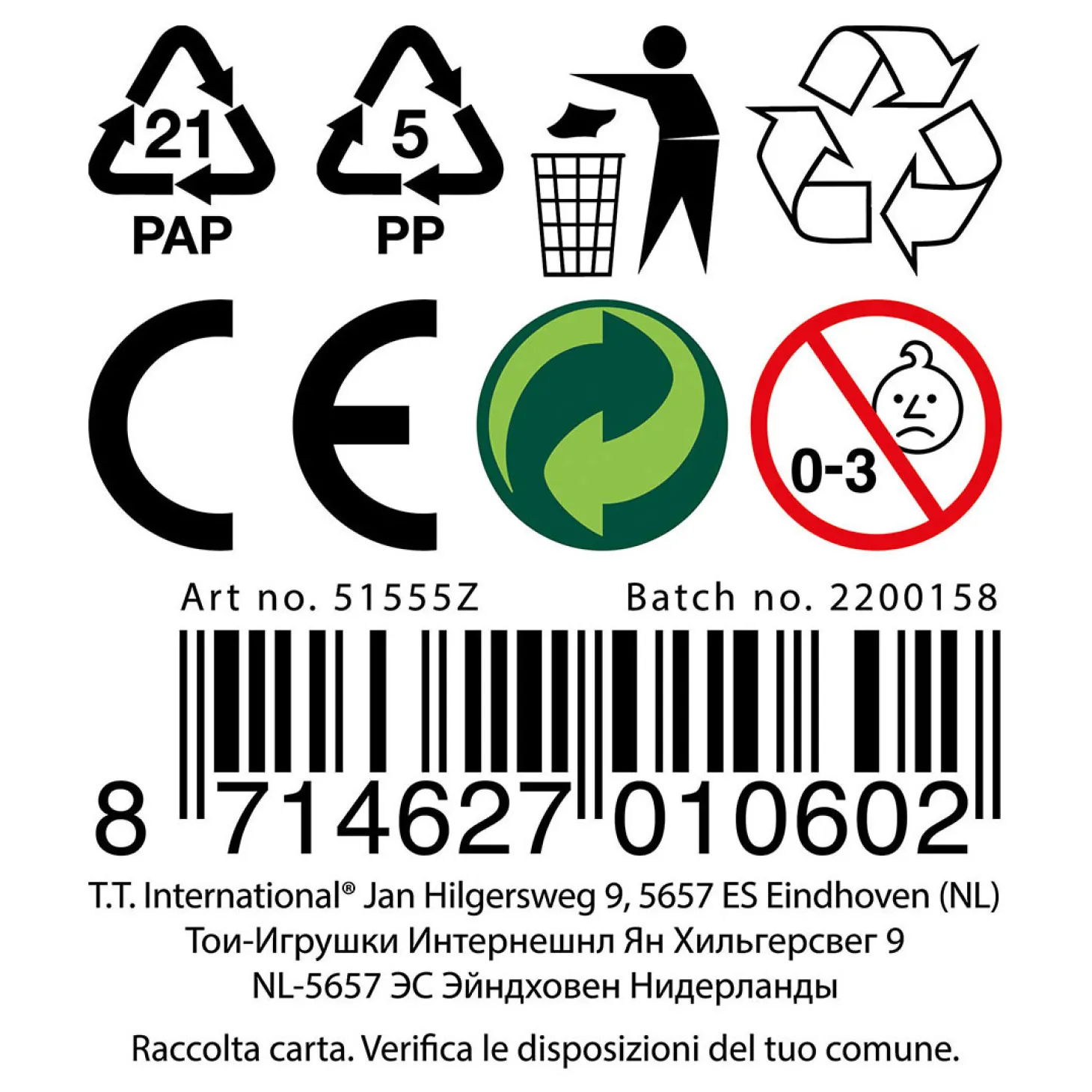 - Waarschuwing: Niet geschikt voor kinderen onder de 3 jaar ivm kleine onderdelen.