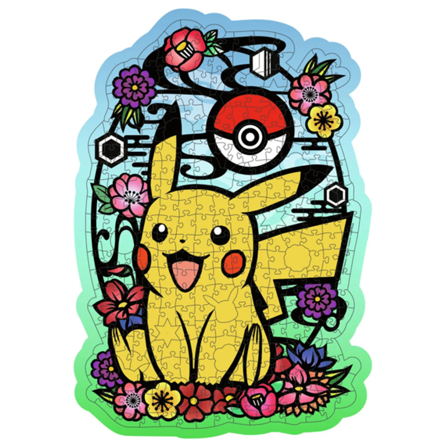 Pokémon Pikachu houten contourpuzzel met 300 stevige, onregelmatig gevormde puzzelstukjes en met WHIMSIES: kleine houten figuren, die bij het motief passen.