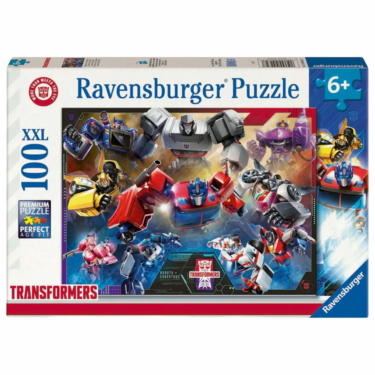 Het motief toont bekende personages zoals Optimus Prime, Bumblebee en andere helden in actie. De stevige kartonnen puzzelstukken zijn extra groot en sluiten perfect op elkaar aan, waardoor ze ideaal zijn voor jonge puzzelaars.