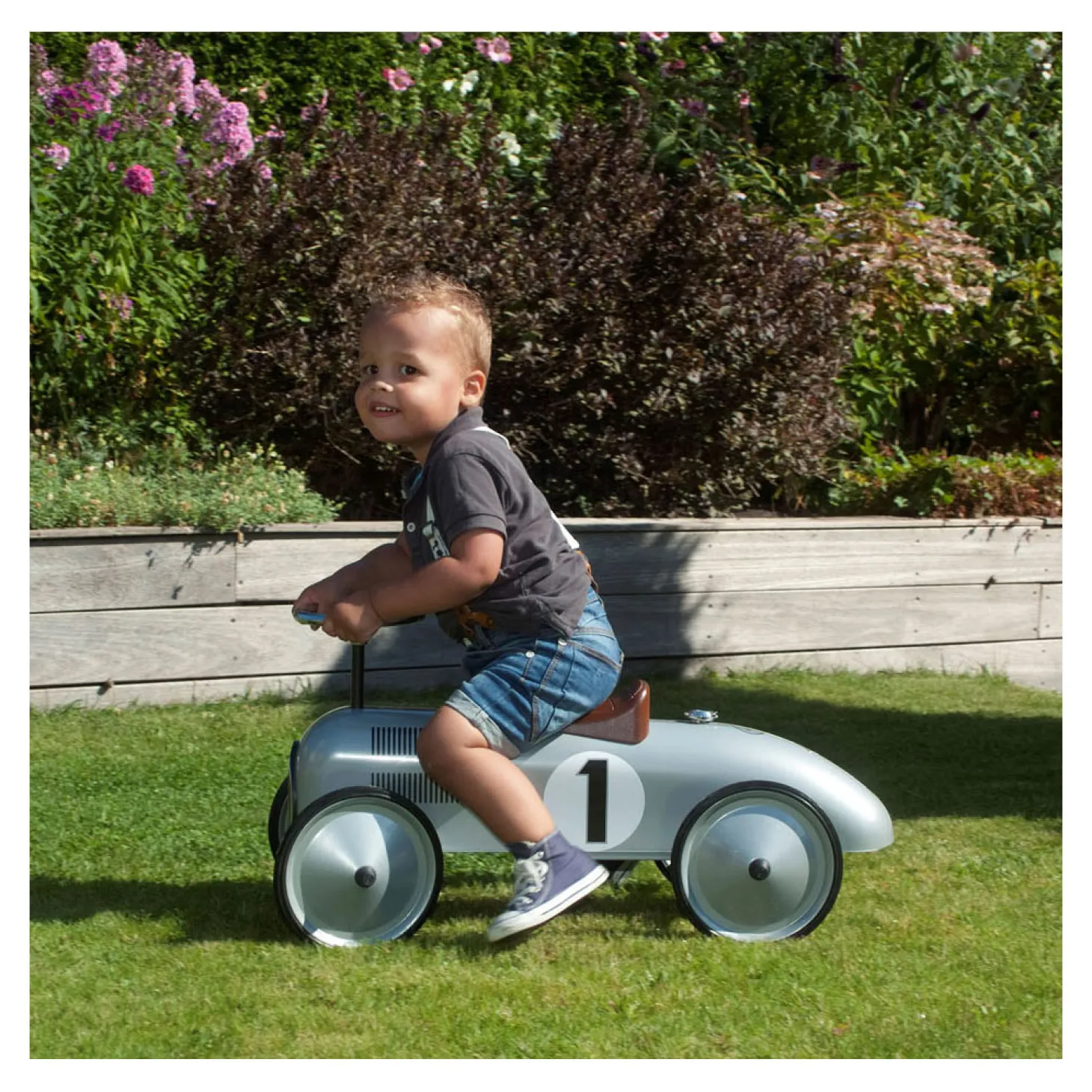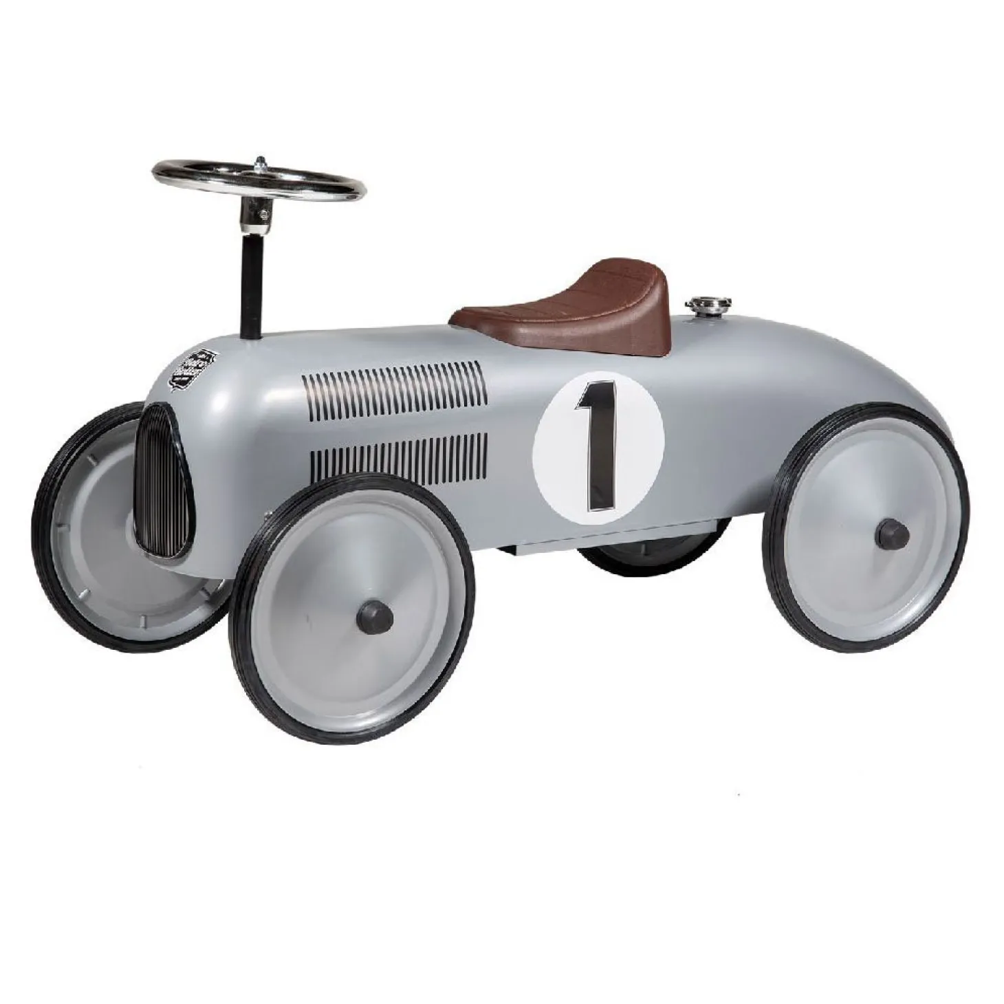Deze prachtige Jean Retro Roller loopauto in zilveren kleurstelling is gebaseerd op de stijl van de formule 1 wagens van vroeger. Super leuk voor jongens en meisjes. Urenlang speelplezier voor zowel binnen- als buiten gegarandeerd. De loopauto is voorzien van metalen wielen en rubberen banden en een kunststof zitting. Leuk als verjaardagscadeau, maar ook heel leuk als woonaccessoire! De loopauto is volledig van metaal en eenvoudig in elkaar te zetten en te monteren. Jouw kindje kan zó opstappen en karren maar! Geschikt voor kinderen vanaf 24 maanden. Afmeting: 75 x 40 x 40 cm. Draaggewicht: max. 20 kg.