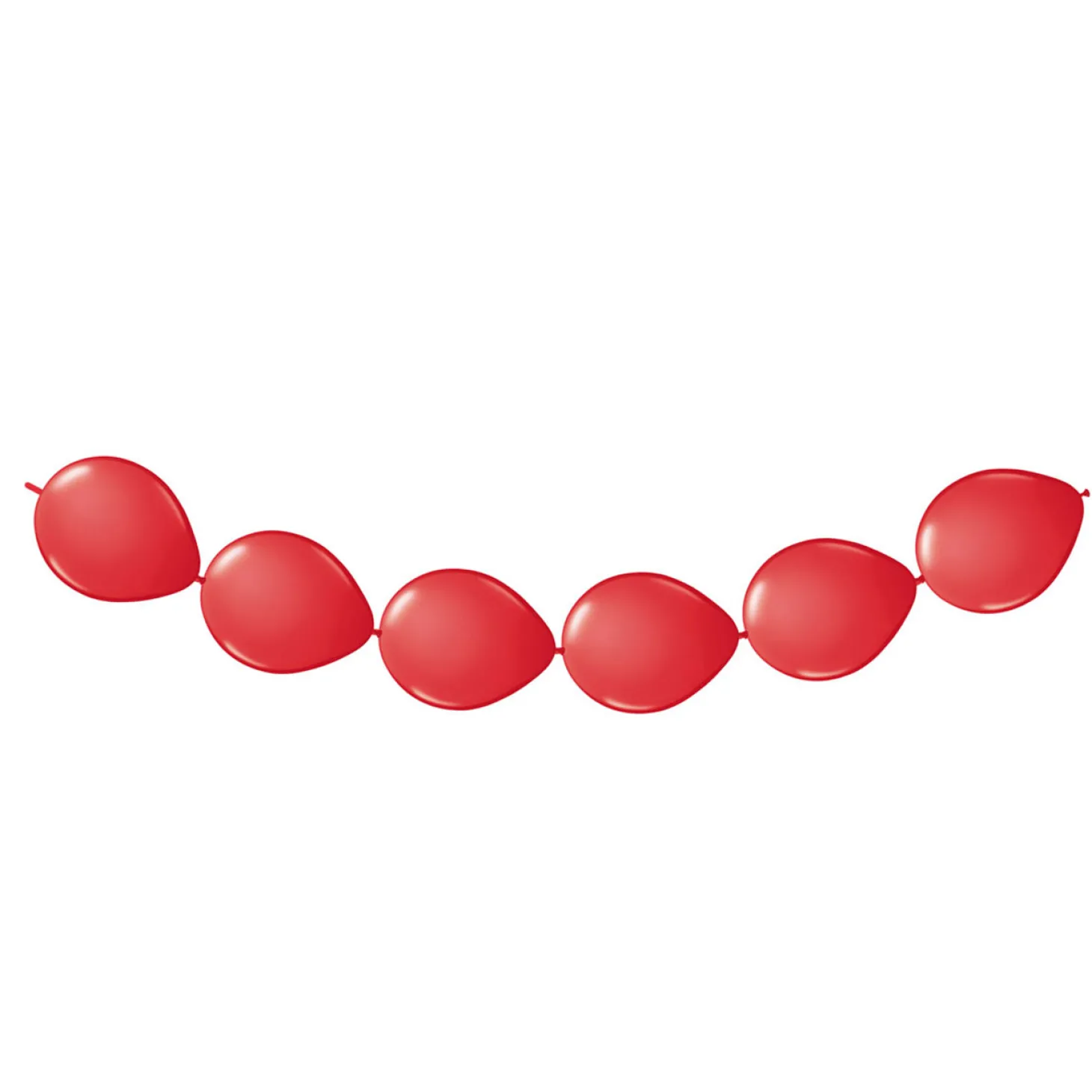 Set van 8 rode knoopballonnen. Knoopballonnen zijn ideaal voor het maken van leuke ballonfiguren, bogen of pilaren. Een knoopballon heeft aan de andere kant van de vultuut nog een extra tuutje. Met dit tuutje kunnen de ballonnen aan elkaar vast worden geknoopt. Deze set van 8 ballonnen vormt een slinger van ongeveer 3 meter.