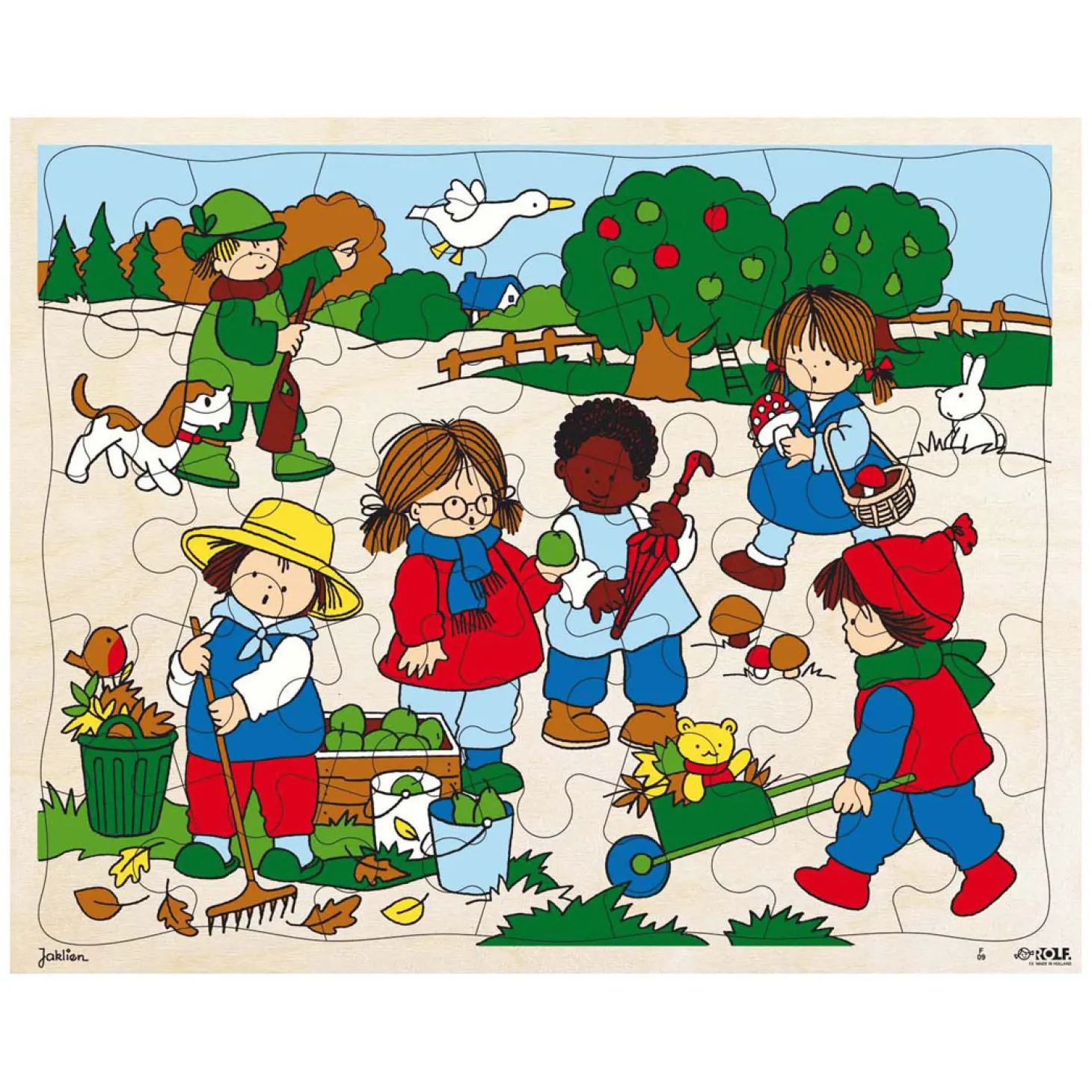 De vier jaargetijden in puzzelvorm: herfst. Al puzzelend neem je met het kind het jaargetijde door. Wat zie je op deze legpuzzel, wat doe je in het najaar? De jaargetijdepuzzels hebben 35 tot 80 vlakke puzzelstukjes en een formaat van 37,5 30 cm. Bescherm je puzzel tegen slijtage, bestel er een kunststof afdekplaat van 37,5 x 30 cm bij.