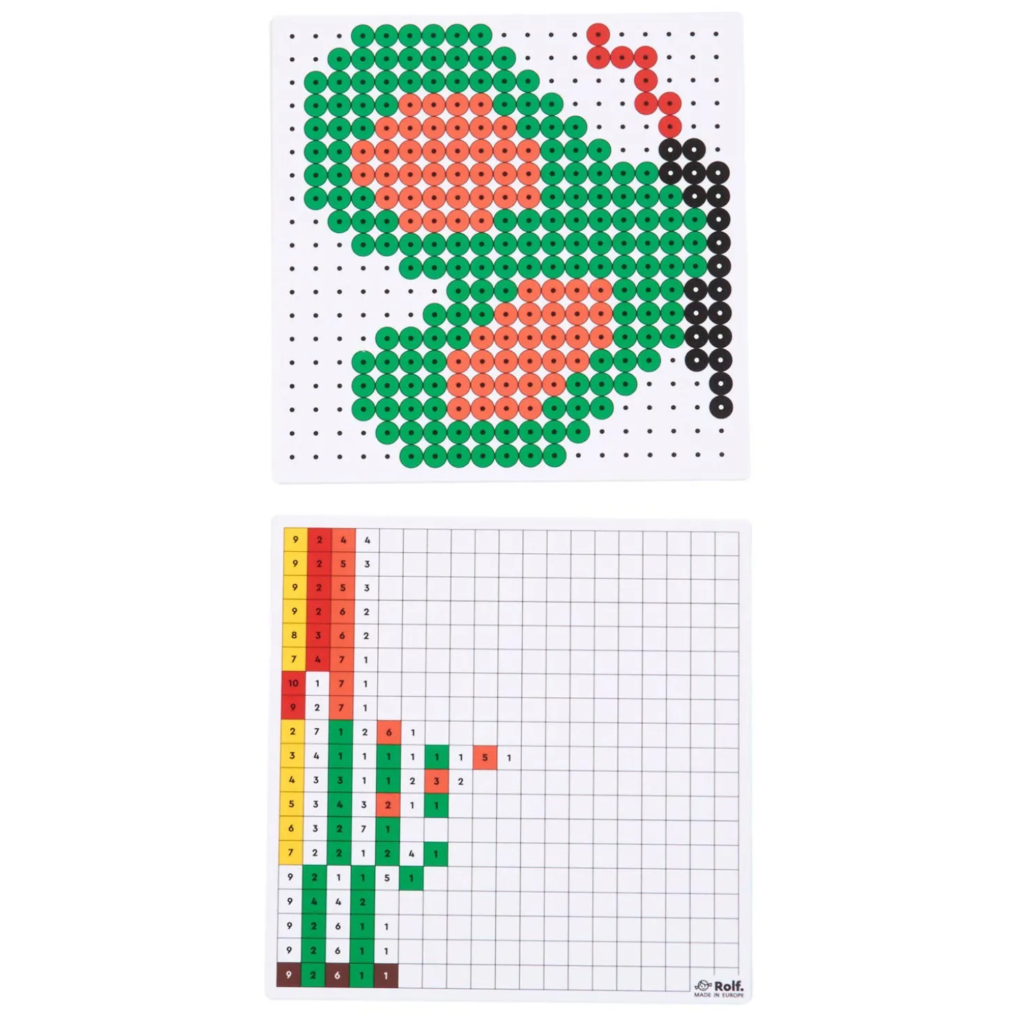 Plaats het aantal kralen op de bovenste regel van de kralenplank volgens de code