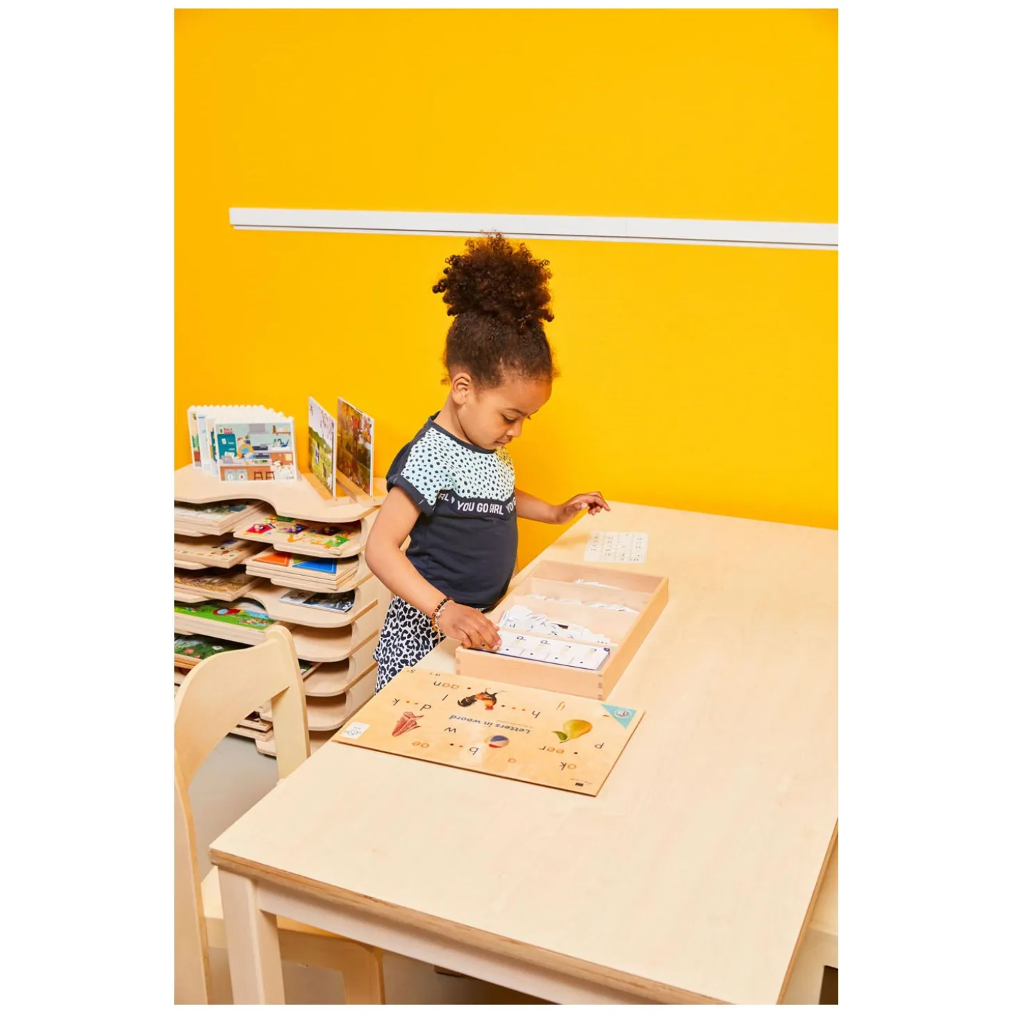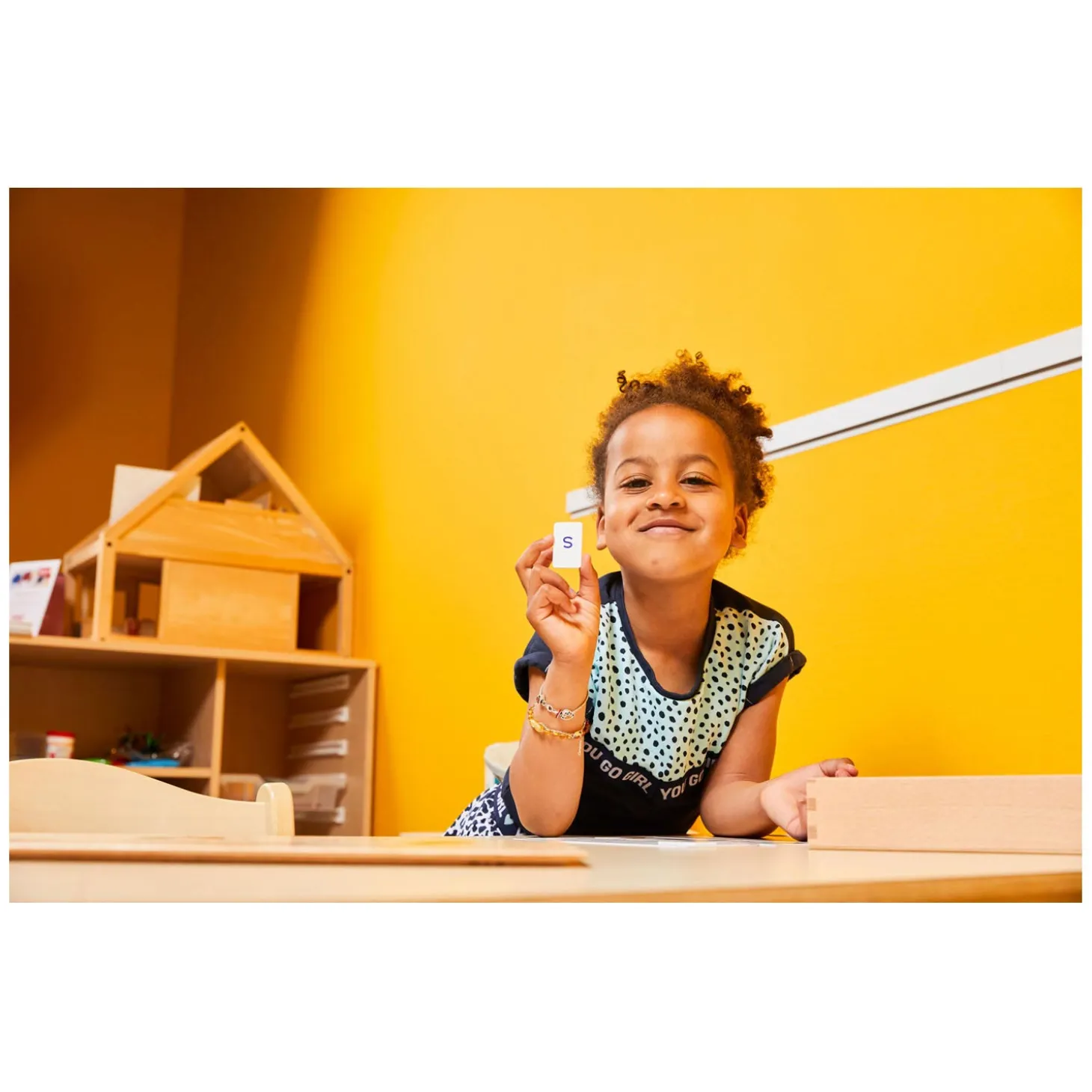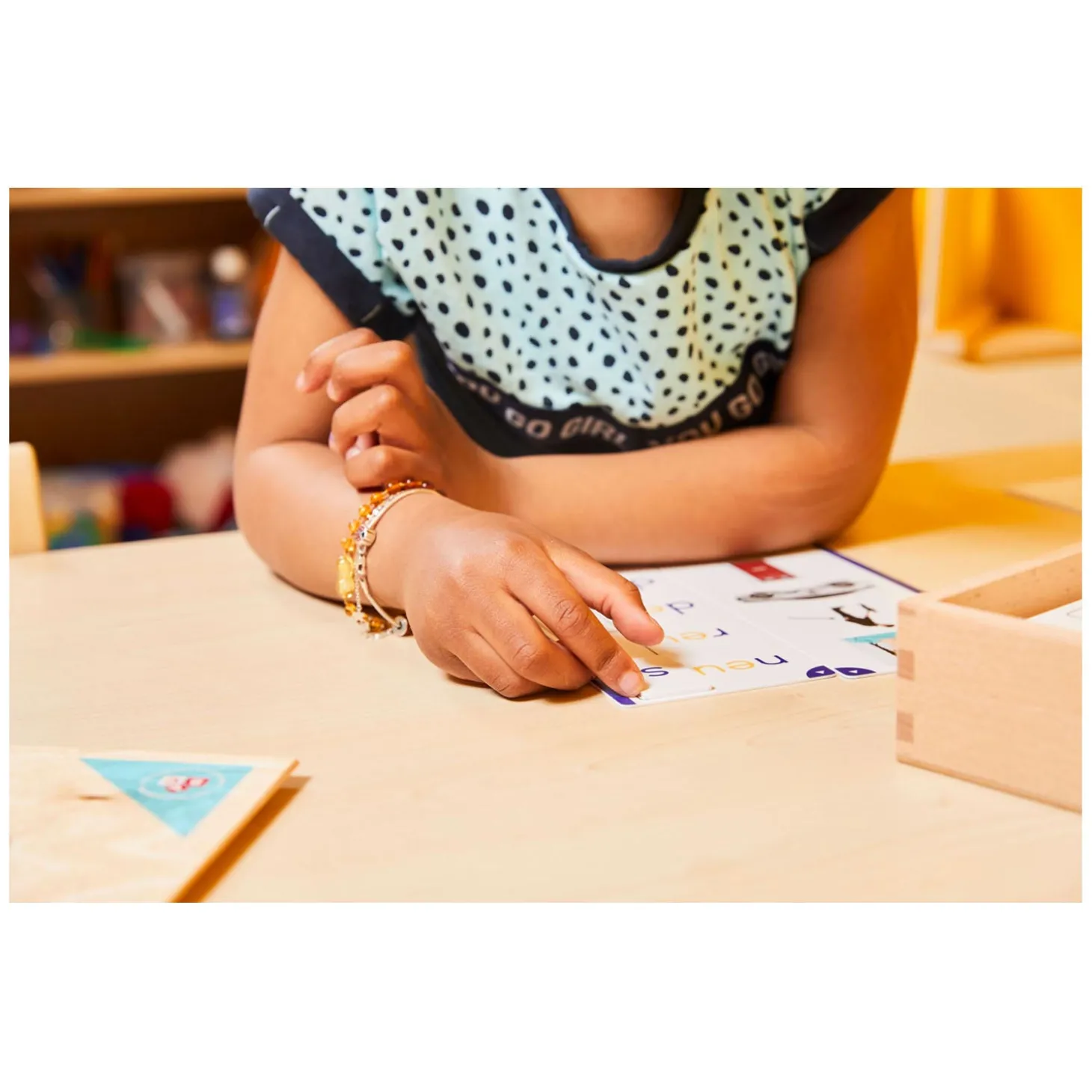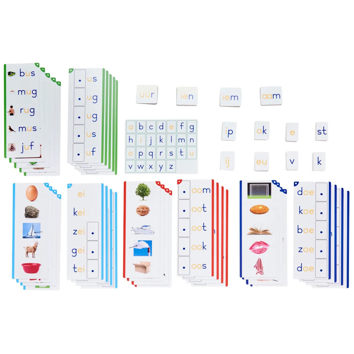 • 34 foto- en opdrachtkaarten (70 x 210 mm) 10 kaarten groen kader: mkm woorden, zoals bal en dak.