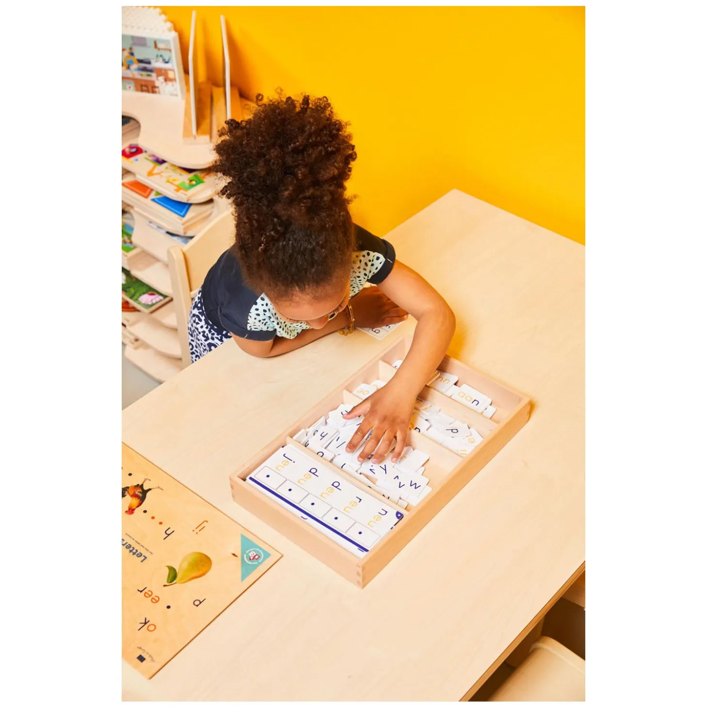 • 8 kaarten donkerblauw kader: meerletterklinkers ui, oe, eu, ie.