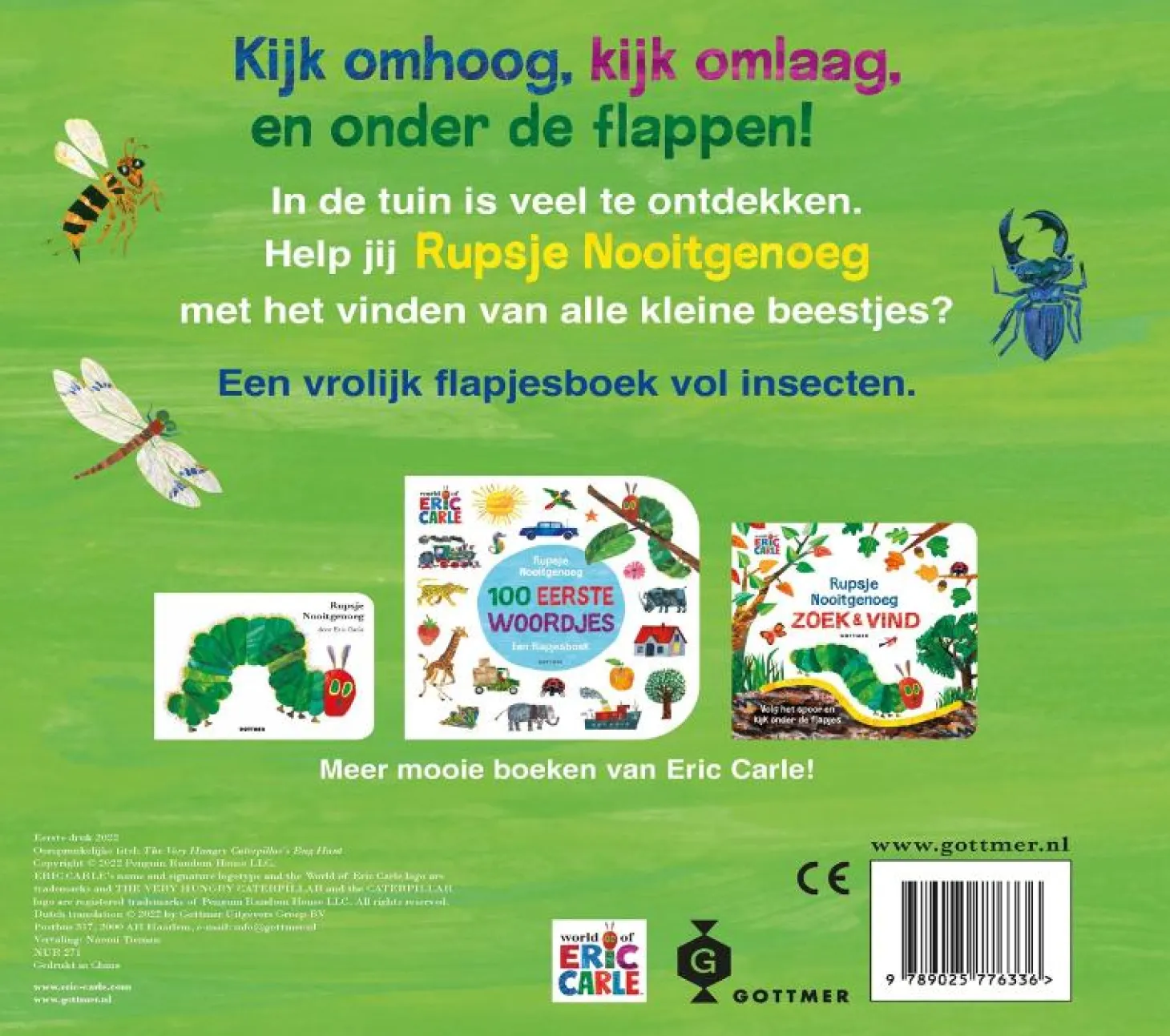 Ga met Rupsje Nooitgenoeg mee naar zijn domein om daar samen van alles – vaak heel gewoon en tóch heel bijzonder – te ontdekken. In dit flinke kartonboek vol grote flappen komt Rupsje Nooitgenoeg een heleboel oude bekenden uit de pen van Eric Carle tegen, zoals de spin, de krekel en de bij. Maar er komen ook nieuwe insecten voorbij om van alles over te leren. Ontdek welk beestje waar leeft, wanneer ze tevoorschijn komen en nog veel meer leuke feitjes.