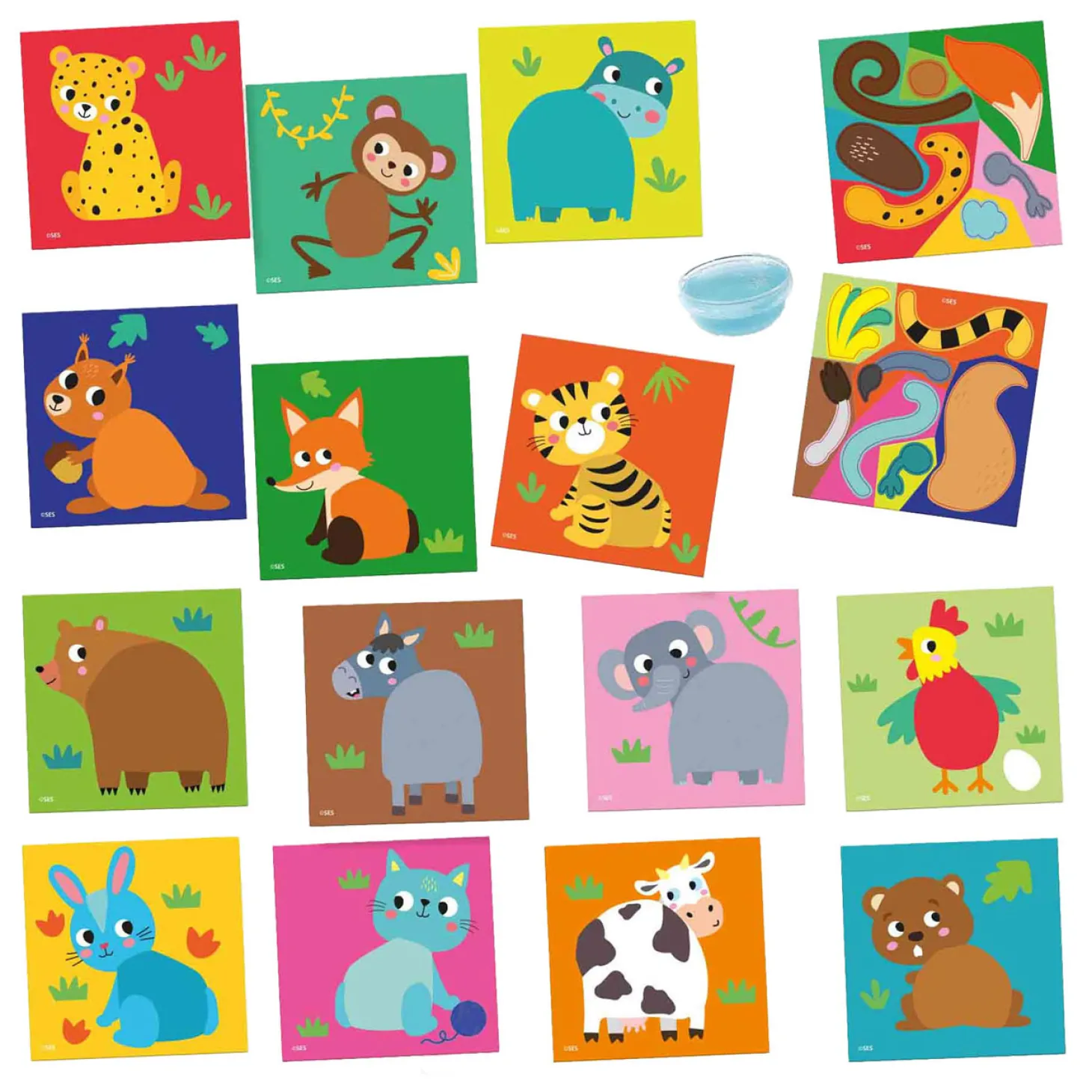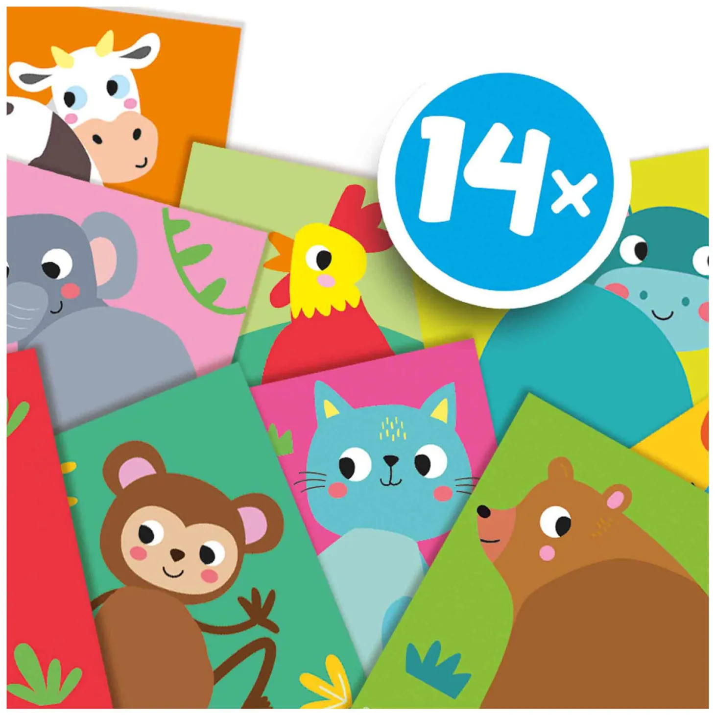 Deze dieren zijn hun staart verloren.. Maar welke staart is van wie? Deze activiteit is leuk voor ouders met jonge kinderen om samen te doen. Met de veilige vingerlijm zijn de goede staarten gemakkelijk op de kaarten te plakken. Zo worden de 14 dieren stap voor stap weer compleet. Stimuleer samen het inbeeldingsvermogen en de fijne motoriek van jouw kinderen! Geschikt vanaf 1 jaar.