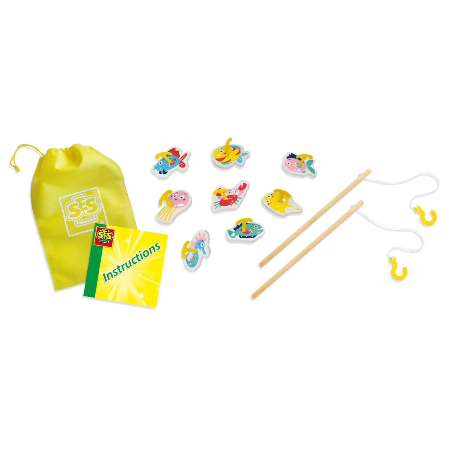 – Vrolijk geïllustreerde vissen met kunststof haakjes;