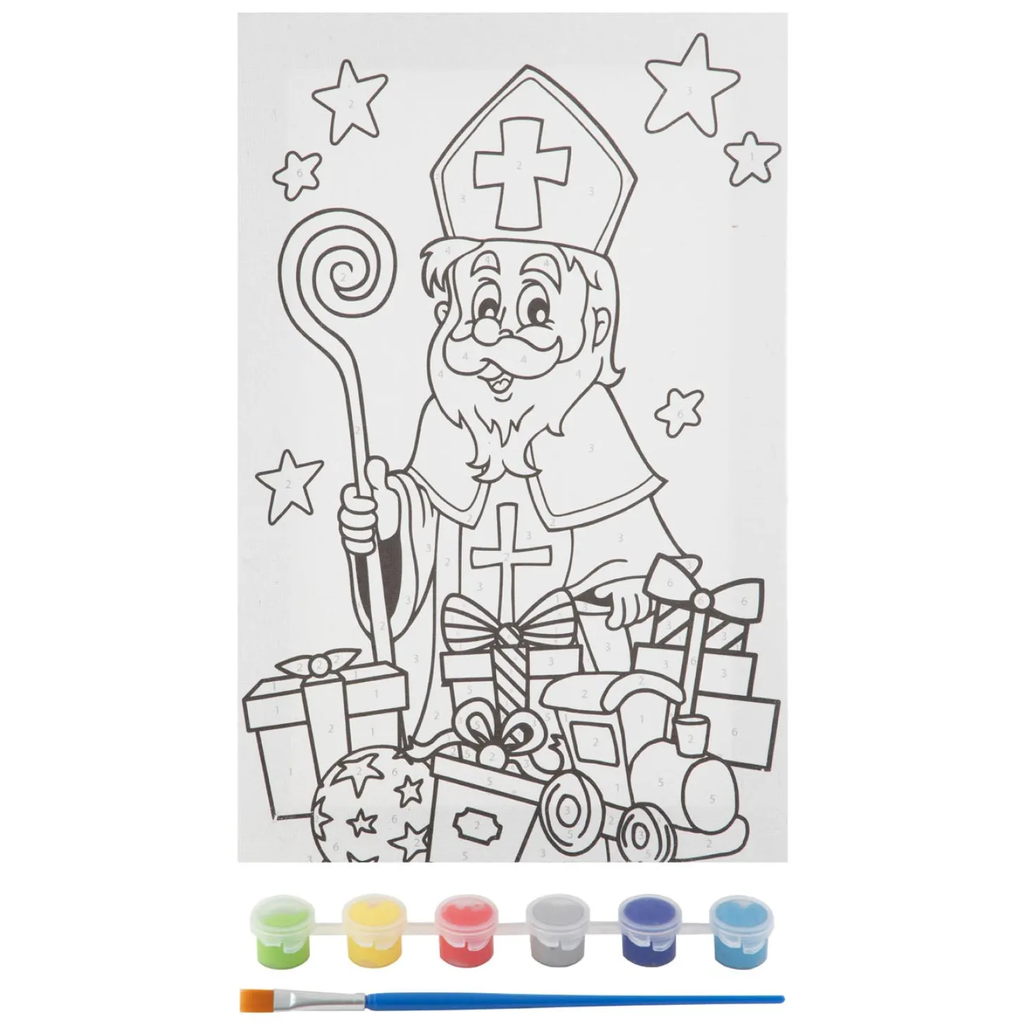 Inclusief 6 potjes verf en kwastje. Geschikt vanaf 5 jaar.Prijs per stuk, verschillende uitvoeringen/kleuren worden door elkaar geleverd.