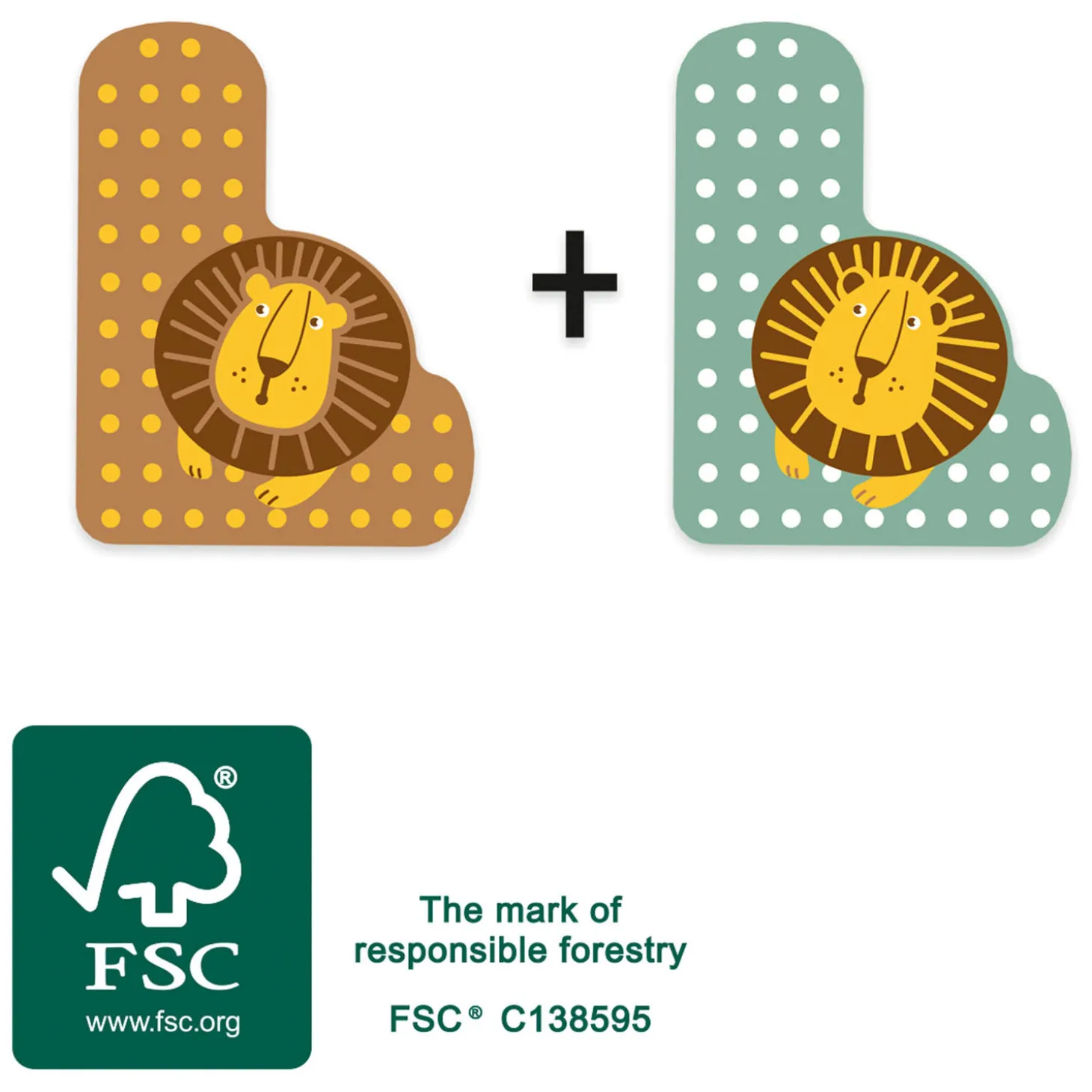 Gemaakt van 100% FSC-hout. Afmetingen: 7 x 5,5 x 0,5 cm.Prijs per stuk, verschillende uitvoeringen/kleuren worden door elkaar geleverd.