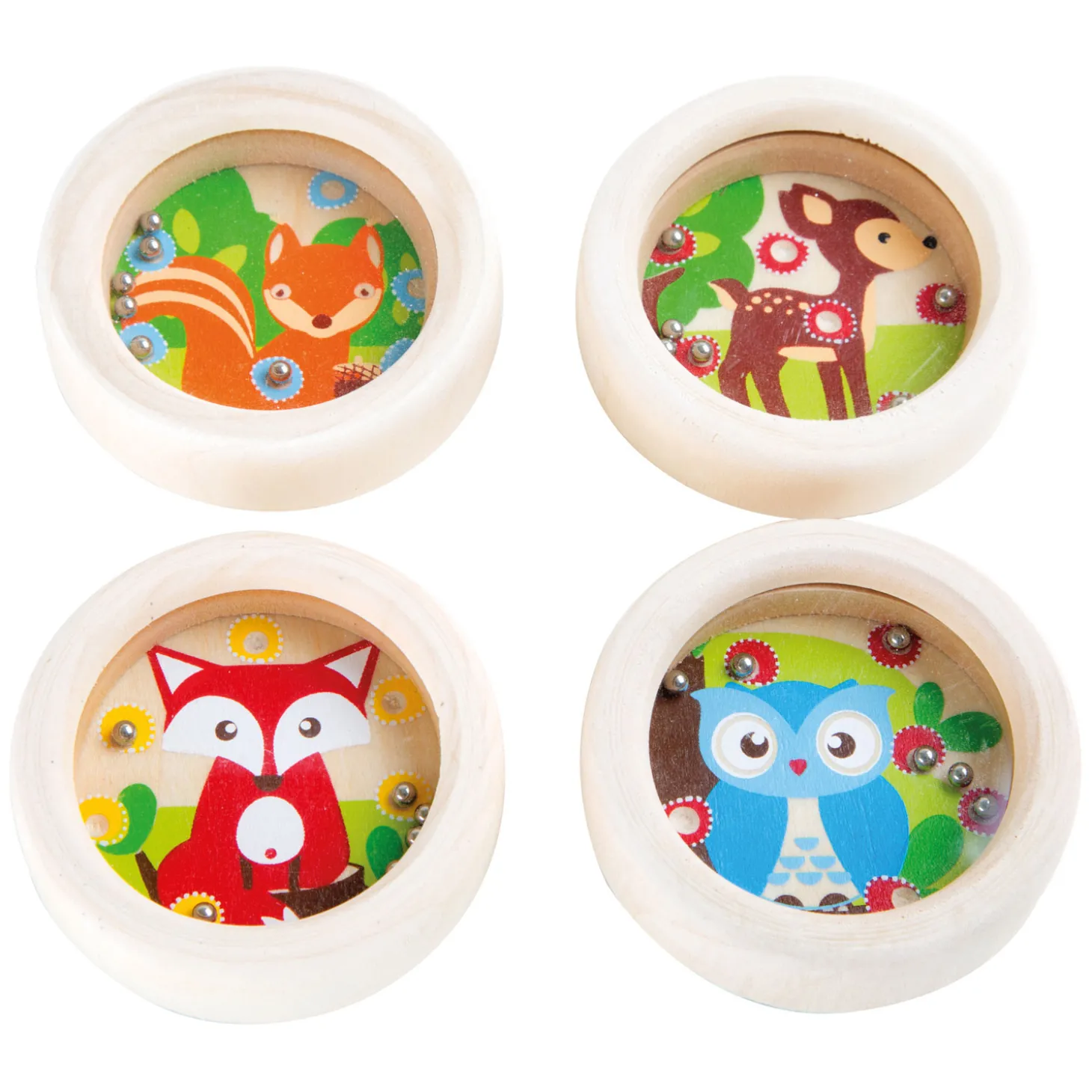 Vier verschillende motieven en zes metalen balletjes garanderen plezier bij het oefenen van geduld. Het spel van 100% FSC-gecertificeerd hout traint ook de motoriek en behendigheid.Prijs per stuk, verschillende uitvoeringen/kleuren worden door elkaar geleverd.