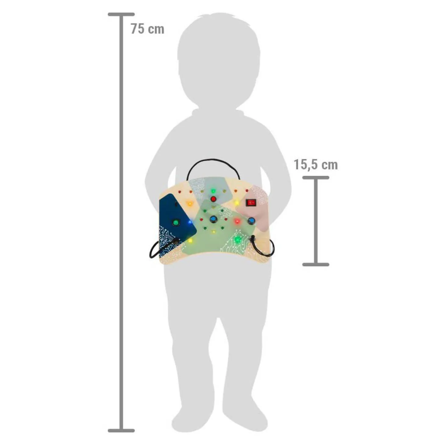 Geschikt voor kinderen vanaf 24 maanden. Het formaat van het LED board is 22,5 x 15,5 x 5 cm Werkt op 3 AAA batterijen (niet inbegrepen).