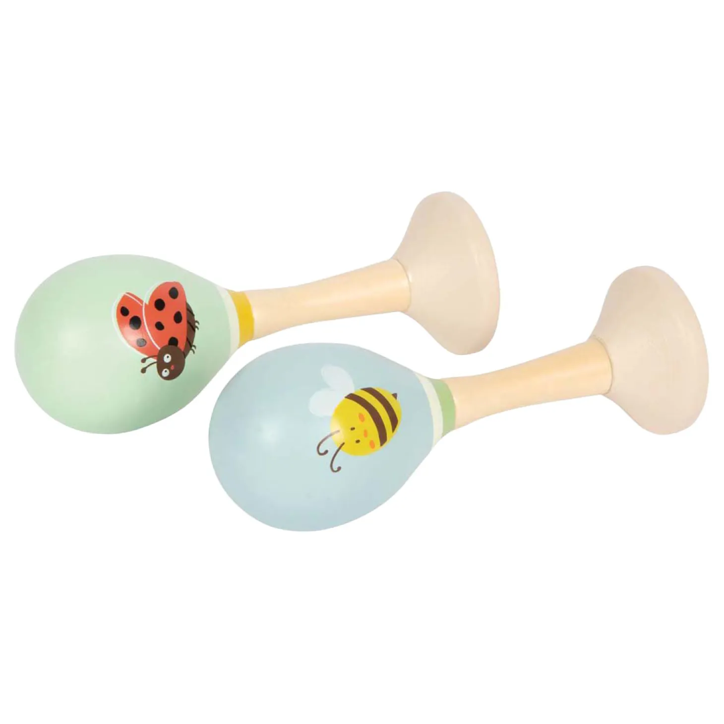 Of het nu als eerste ritme-instrument is of gewoon om vrolijk mee te rammelen, maracas zijn het perfecte muziekspeelgoed voor kleine kinderen. De twee muzikale rammelaars zijn niet alleen educatief waardevol, maar ook visueel aantrekkelijk met vrolijke, kindvriendelijke motieven en zachte pastelkleuren. Kinderen ontwikkelen op een leuke manier hun gevoel voor ritme wanneer ze ermee schudden en de verbinding tussen beweging en geluid ervaren. Tegelijkertijd worden motorische vaardigheden, coördinatie en concentratie ontwikkeld.