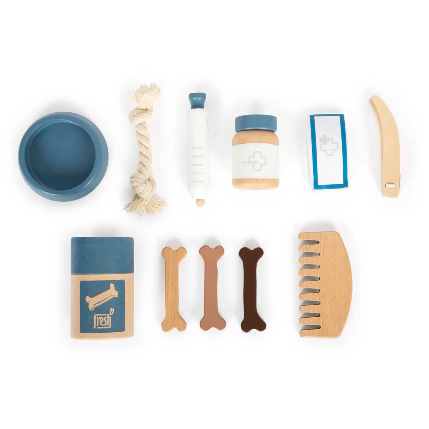 Het verzorgen van de hond traint de sociale en emotionele vaardigheden van kinderen terwijl ze op een verantwoordelijke maar leuke manier oefenen met het verzorgen van een levend wezen. De set is geschikt voor kinderen vanaf 24 maanden.