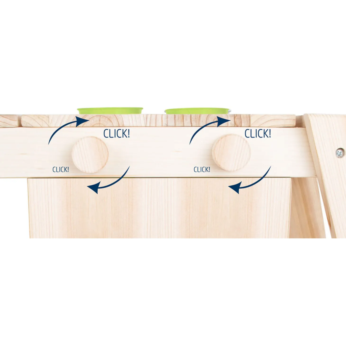 Deze modderkeuken nodigt kinderen uit om naar hartelust in de modder te spelen. De oven is een bijzonder speelhoogtepunt! Twee voorgemonteerde rails helpen kinderen bij het plaatsen van de “bakplaat”. De ovendeur kan volledig worden geopend via de uitsparingen die kunnen worden vastgepakt. Een magneet zorgt ervoor dat de deur veilig kan worden gesloten. De twee bloempotten kunnen niet alleen worden gebruikt om met modder te spelen, maar ook om bloemen, kruiden en nog veel meer in te planten of als verzamelcontainer te dienen. De twee kleine potten in het bovenste gedeelte kunnen ook worden gebruikt om kleinere speeltjes en stukken te organiseren.
