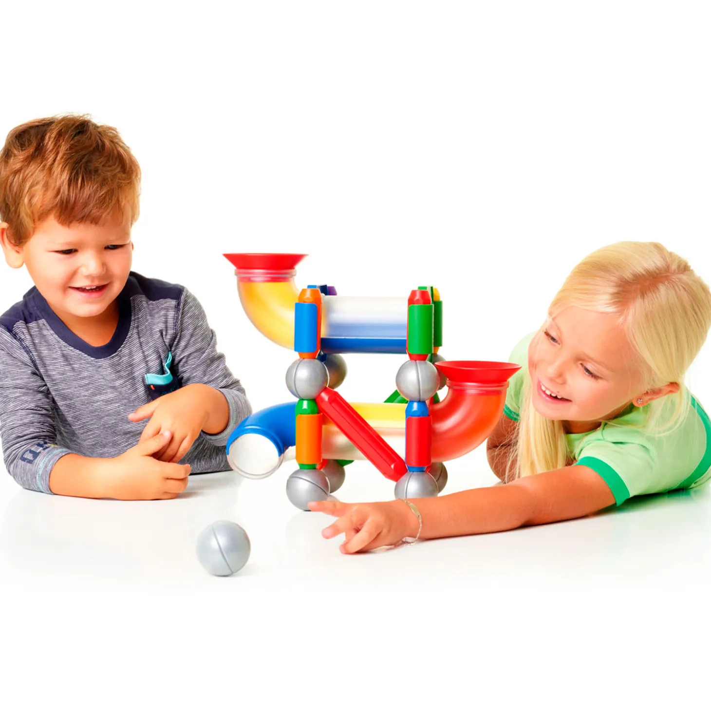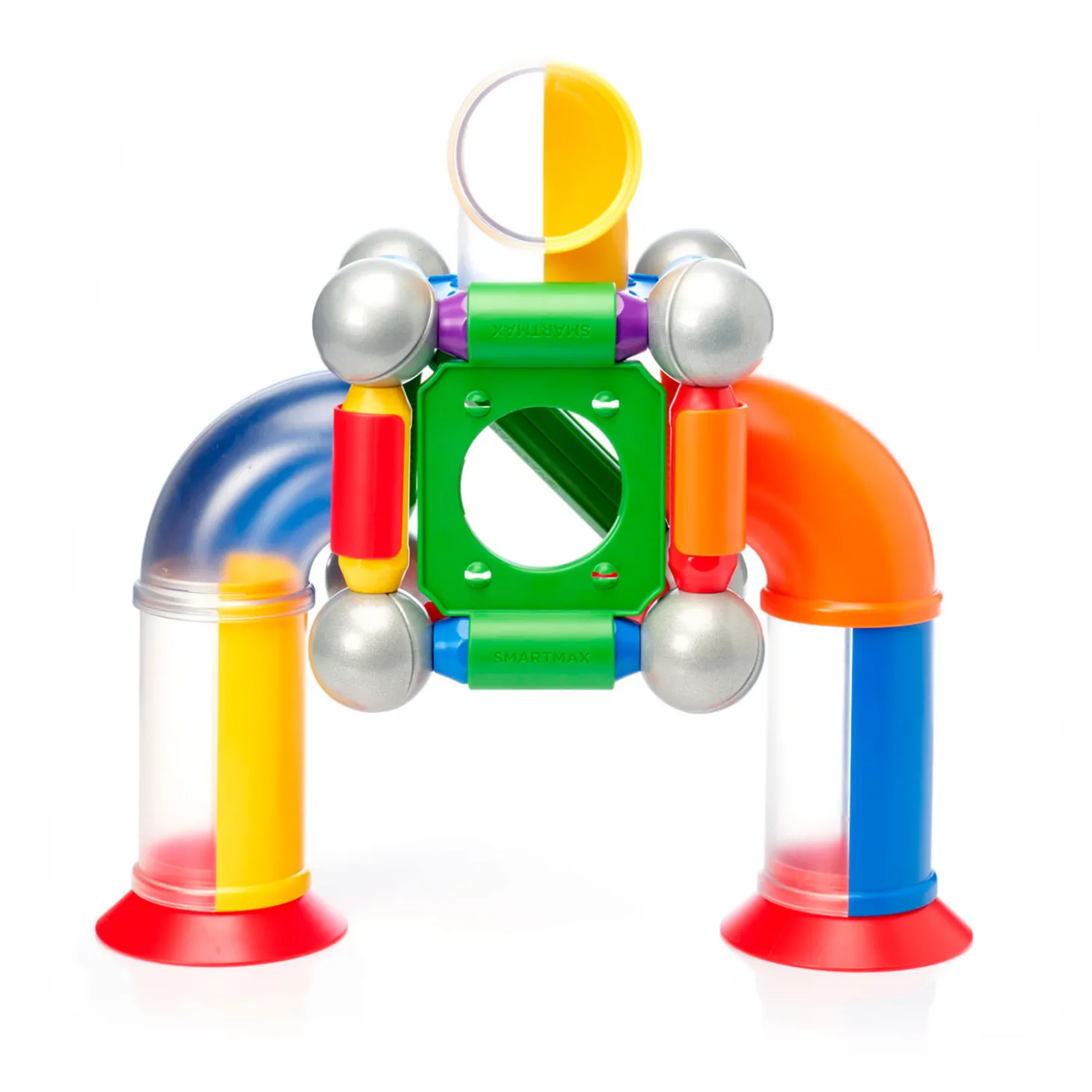 Een speeltuin van buizen voor iedereen die van ballenbanen houdt. Bouw de gekste constructies en laat de ballen maar rollen. Alle onderdelen kunnen worden gecombineerd met de bestaande SmartMax sets. Samen met de staven en metalen ballen, kom je tot een eindeloze reeks mogelijkheden!