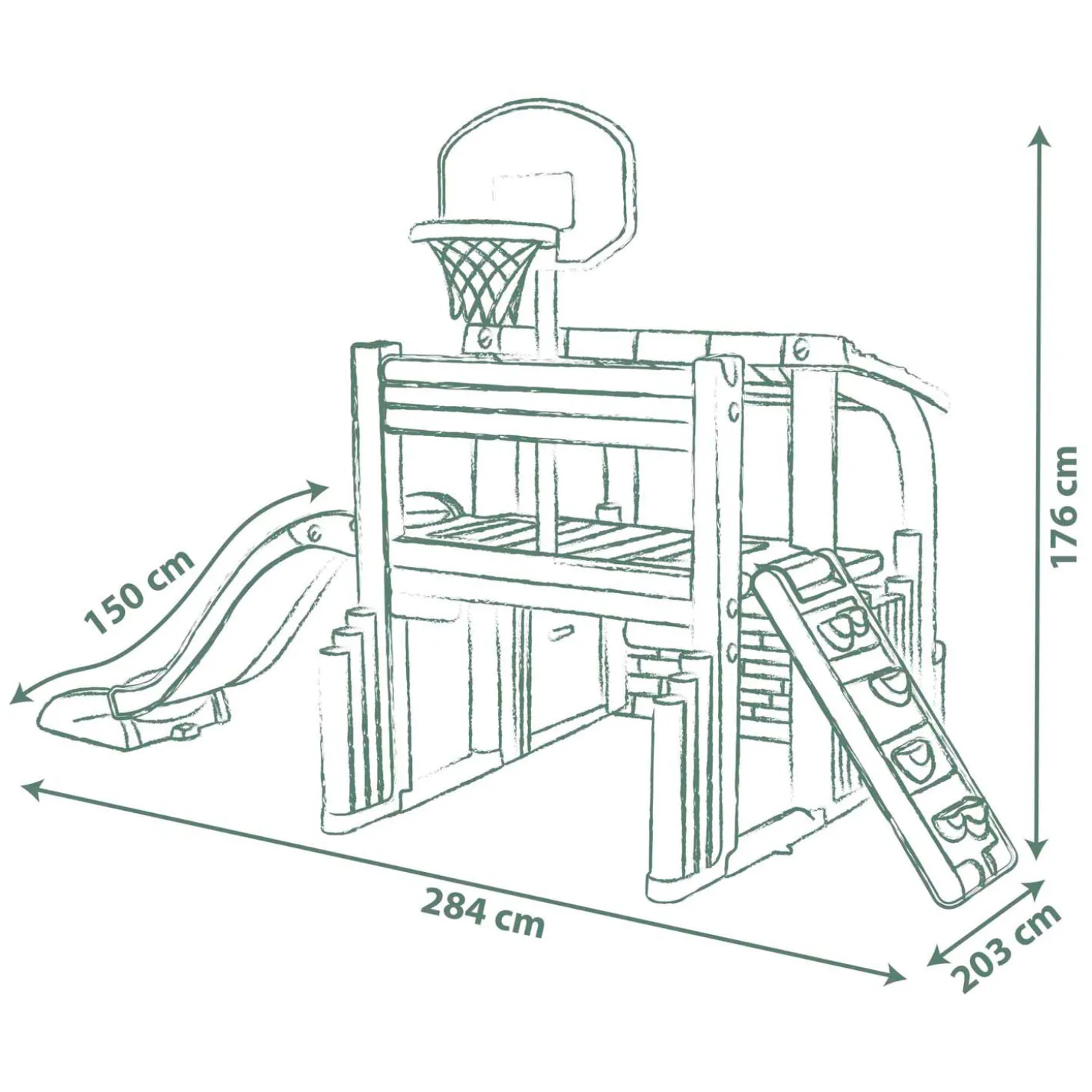 Geschikt voor kinderen vanaf 2 jaar. Afmeting: 284x203x176 cm.