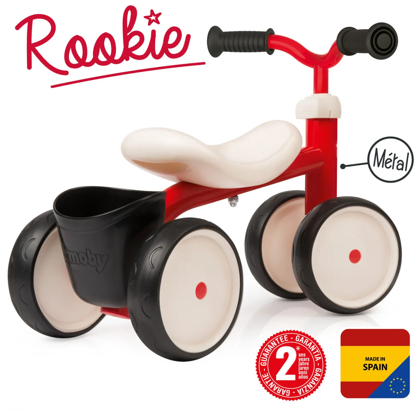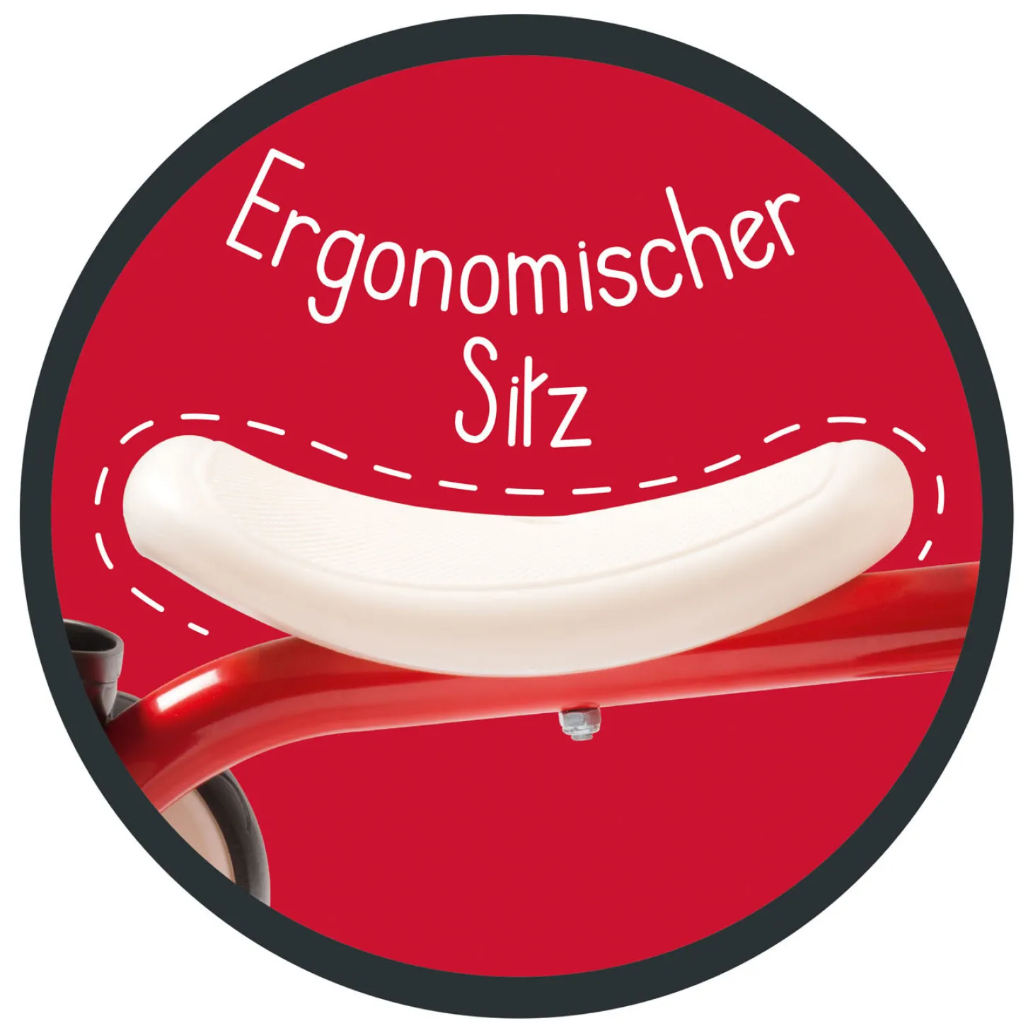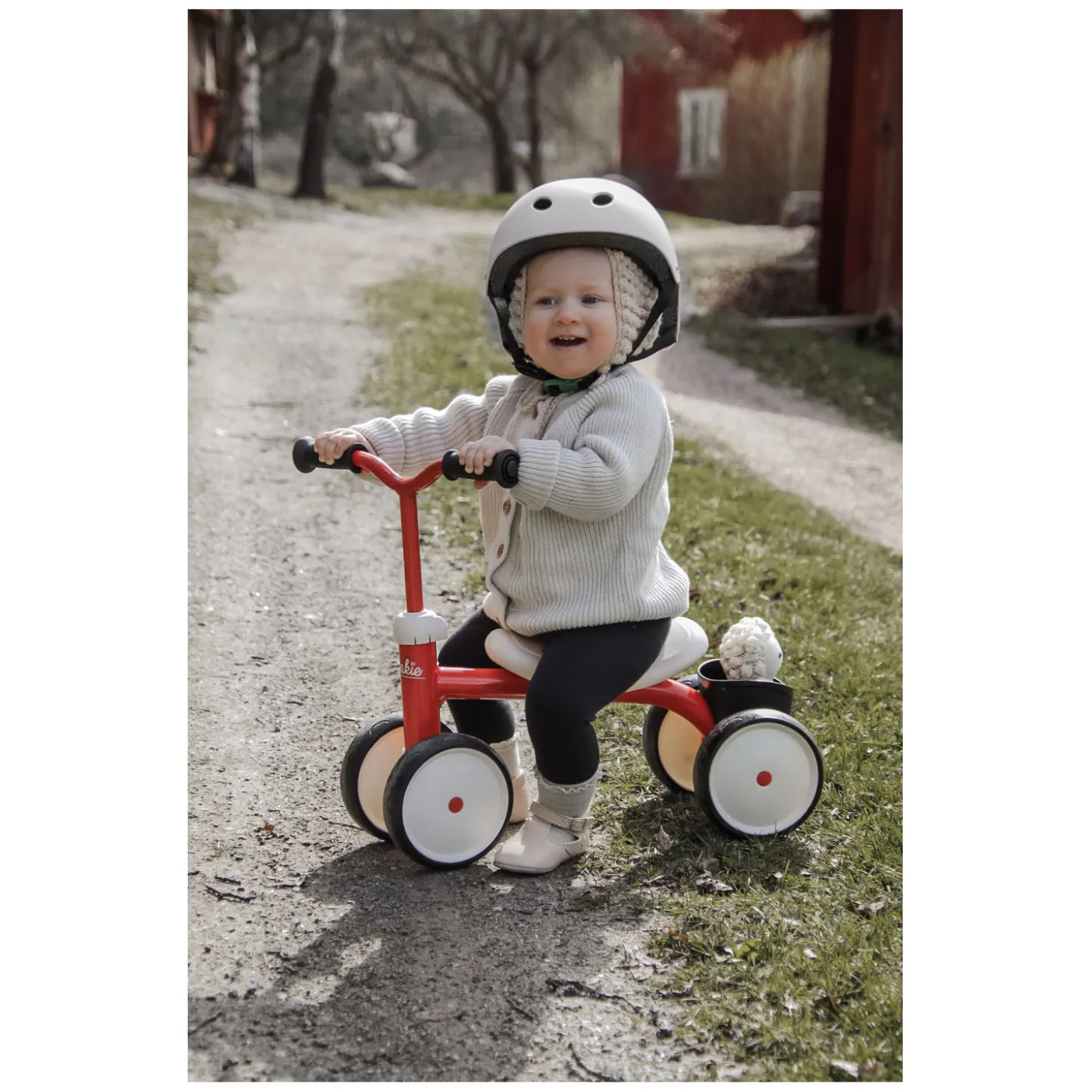 Met een comfortabel, gebogen zadel en stuur met beperkte rotatie is het comfortabel fietsen voor de kleintjes. Dankzij het speciale dreumesformaat met lage instap kunnen ze makkelijk met de voeten bij de grond om zichzelf in balans te leren houden. Lukt dat nog niet helemaal? Geen nood, want deze loopfiets heeft vier stabiele wielen. Mét geluiddempende banden, wel zo fijn voor papa, mama en de buren. Achterop vind je een kunststof bakje waar de favoriete knuffel van je kindje in mee kan rijden. Samen op avontuur!