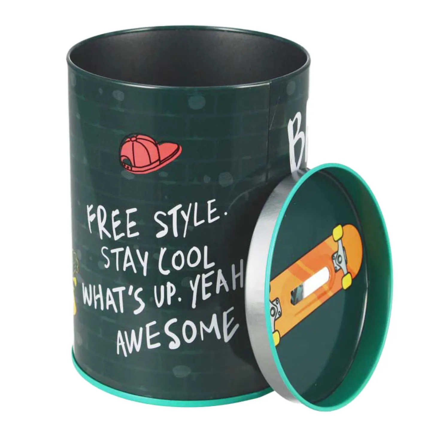 Geschikt voor kinderen vanaf 3 jaar. De metalen bus is 8 x 12 cm groot.