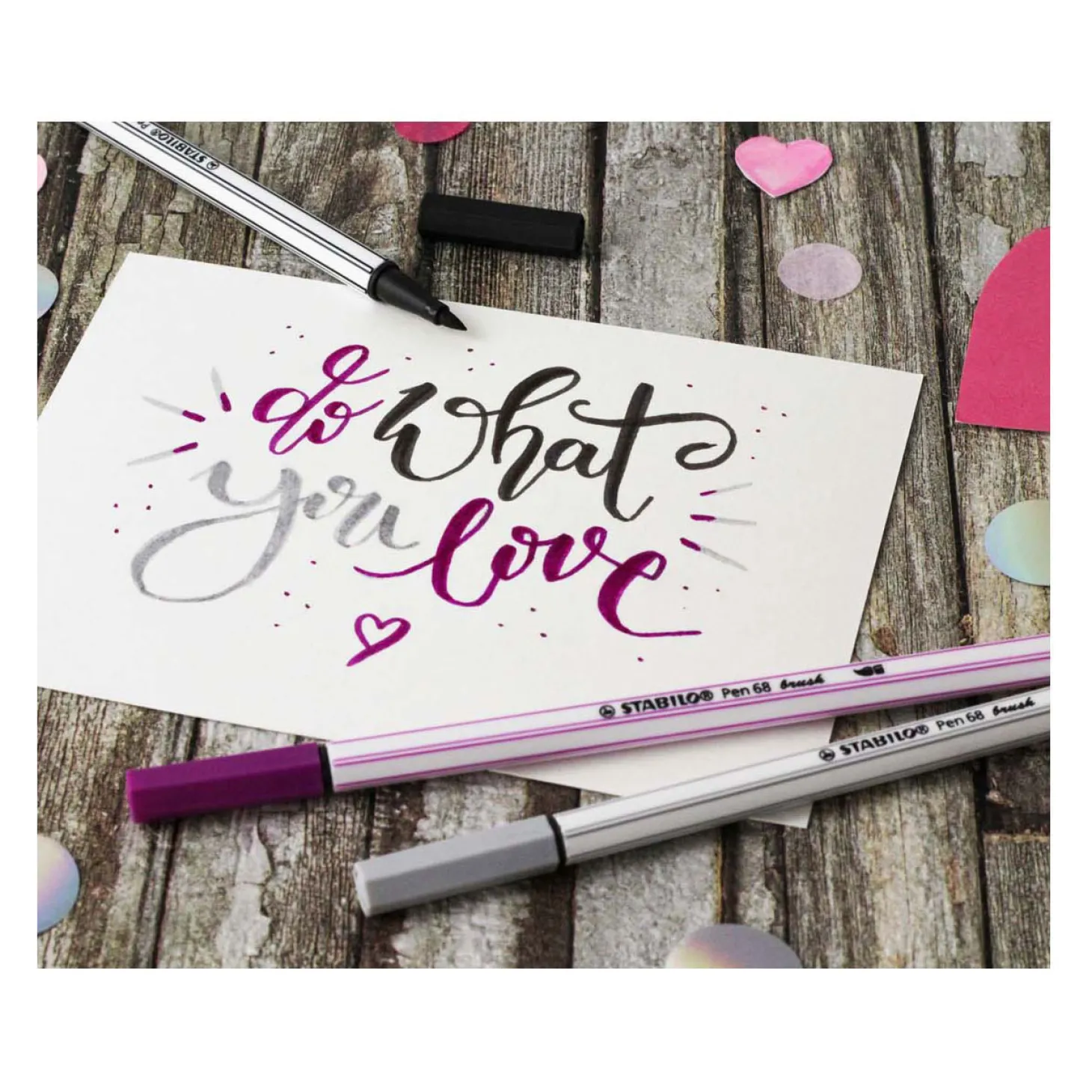 De Pen 68 brush is de nieuwste aanwinst binnen de Pen 68 familie. Met de flexibele penseelpunt kun je door te variëren in druk dunne én dikke lijnen maken.