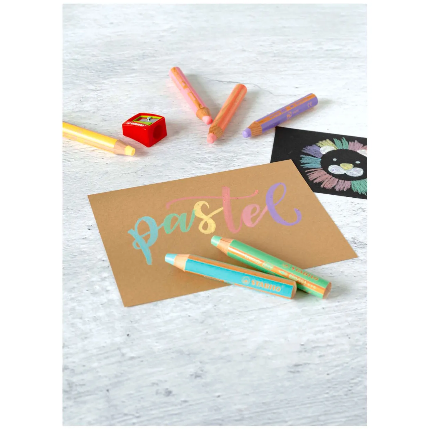 Met de STABILO woody 3 in 1 kan zowel op papier of karton als op gladde oppervlakken, zoals ramen, kunststof, regenlaarzen, broodtrommels, leer en steen worden gekleurd. Dekt zelfs op zwarte ondergronden. Met een kwast en water erbij kunnen prachtige kunstwerken worden gemaakt. De woody 3 in 1 kan weer heel gemakkelijk van harde, niet poreuze, gladde oppervlakken worden verwijderd, zoals ramen.