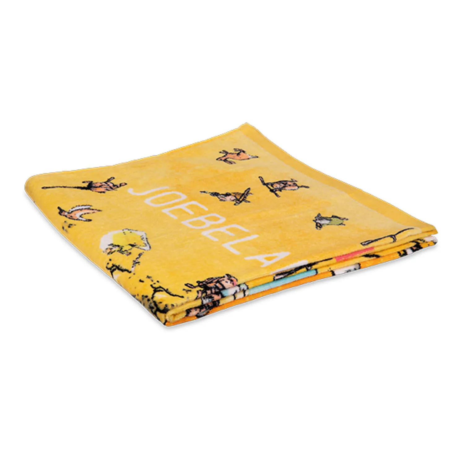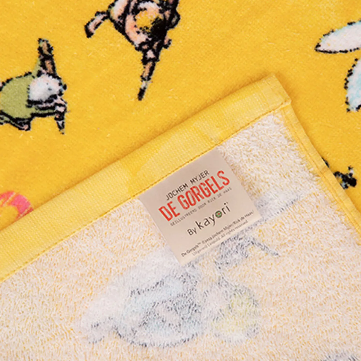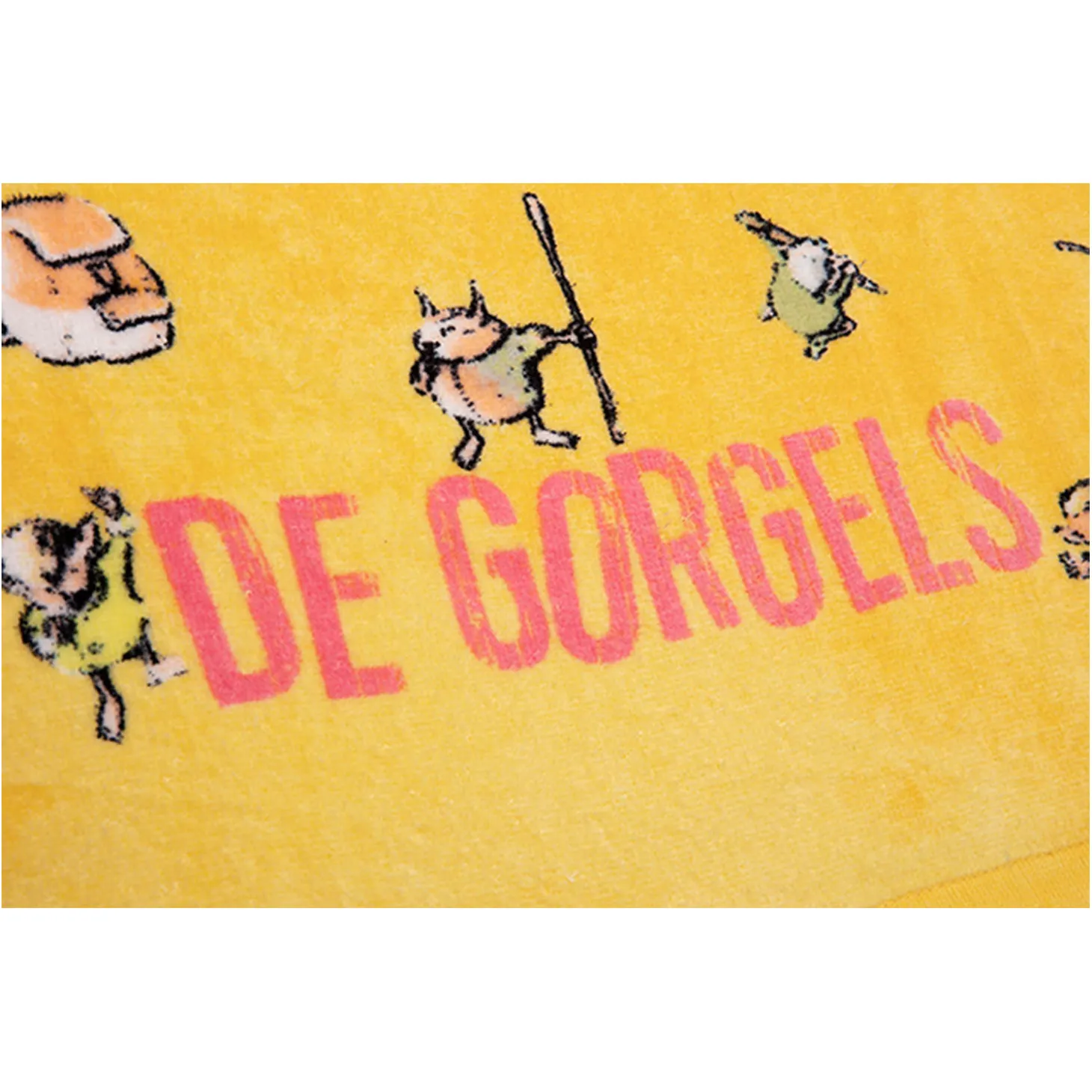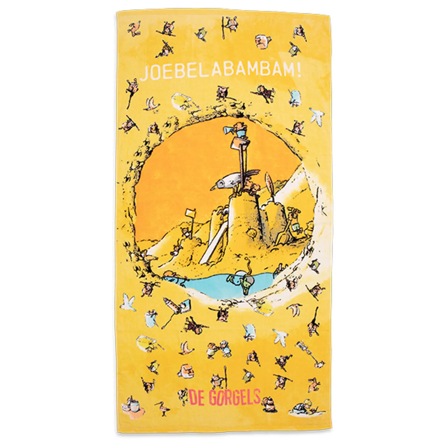 Vrolijk geel strandlaken waarop verschillende Gorgels staan afgebeeld. De bekende kreet ‘Joebelabambam!’ staat ook op het strandlaken. Leuk om mee te nemen naar het strand of natuurlijk gewoon voor thuis na het douchen! Het Gorgels strandlaken is gemaakt van 100% katoen. Het strandlaken is 75 bij 150 centimeter.
