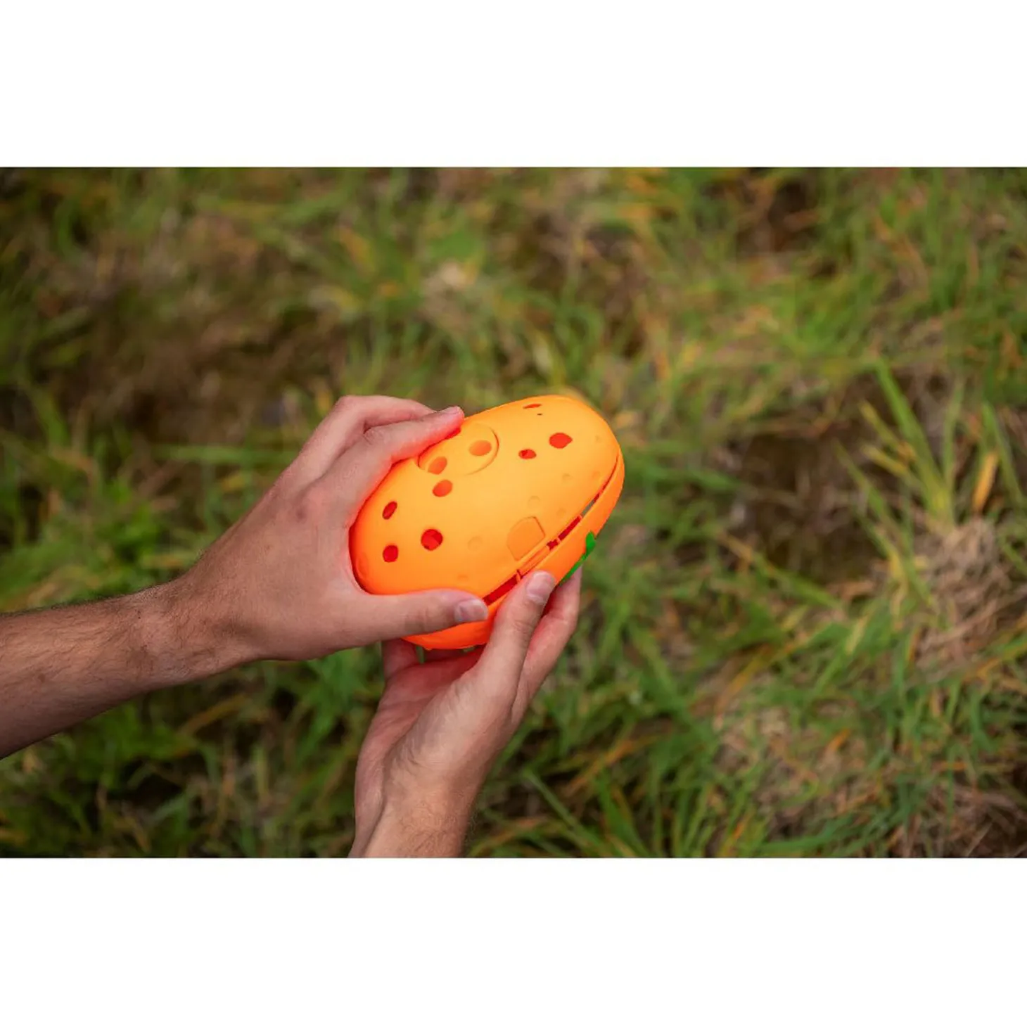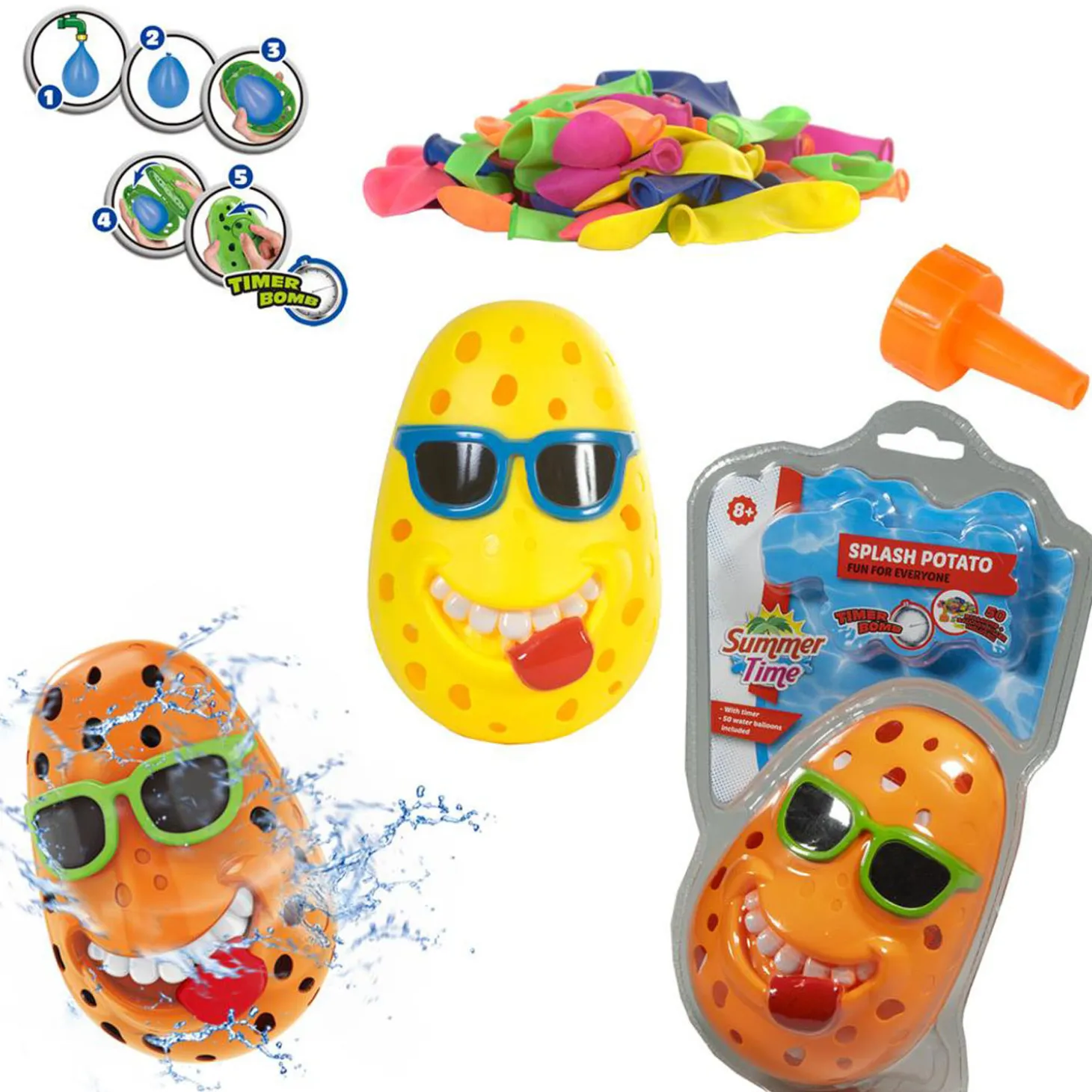 Vul een waterballon met water met het bijgeleverde hulpstukje en plaats ‘m in de Splash Potato. Draai aan de timer en… nu kan het overgooien beginnen! Als jij de Splash Potato net in je handen hebt als de timer af gaat, knapt de waterballon open en word je nat. Je bent nu voor deze ronde uitgeschakeld. De laatste speler die overblijft, wint het spel!