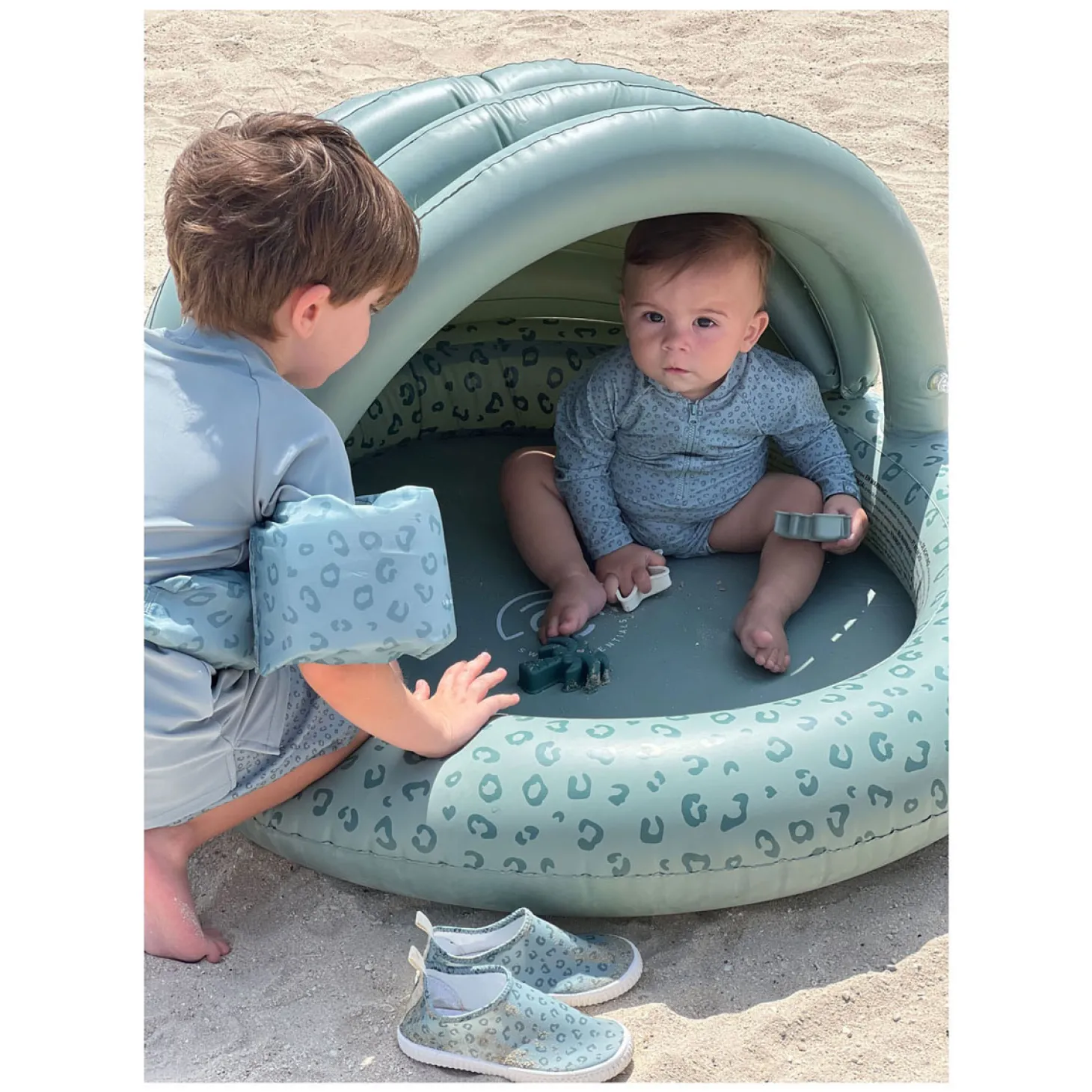 Maar dat is niet alles! We begrijpen dat iedereen een andere voorkeur heeft. Daarom is het kinder zwembad Groen Panterprint ook beschikbaar in andere formaten, in hetzelfde formaat (100 cm) en in een kleiner formaat (60 cm) zonder zonnescherm. Je kunt kiezen welke het beste past bij je kinderen zodat ze optimaal kunnen genieten tijdens de zonnige zomerdagen.
