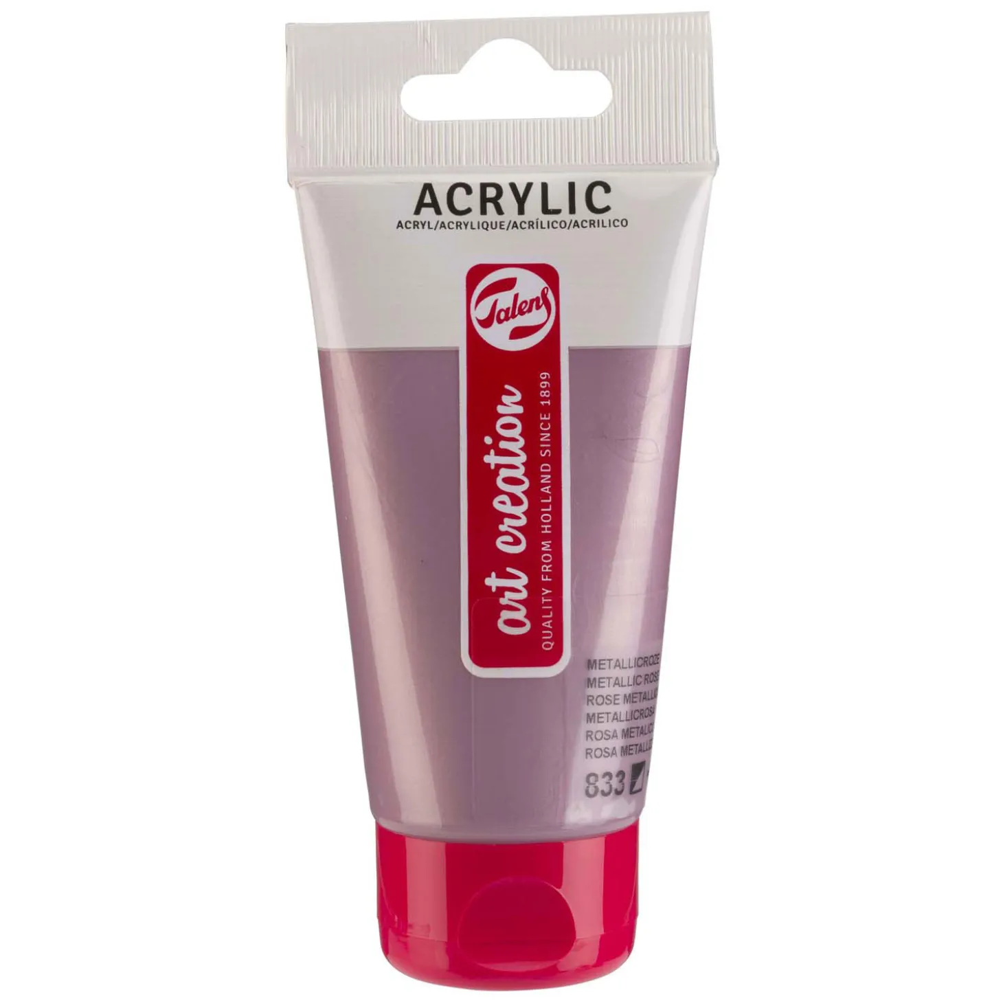 Deze acrylverf in de kleur metallicroze (833) is a semi- opaque colour met een uitstekende lichtechtheid (+++).
