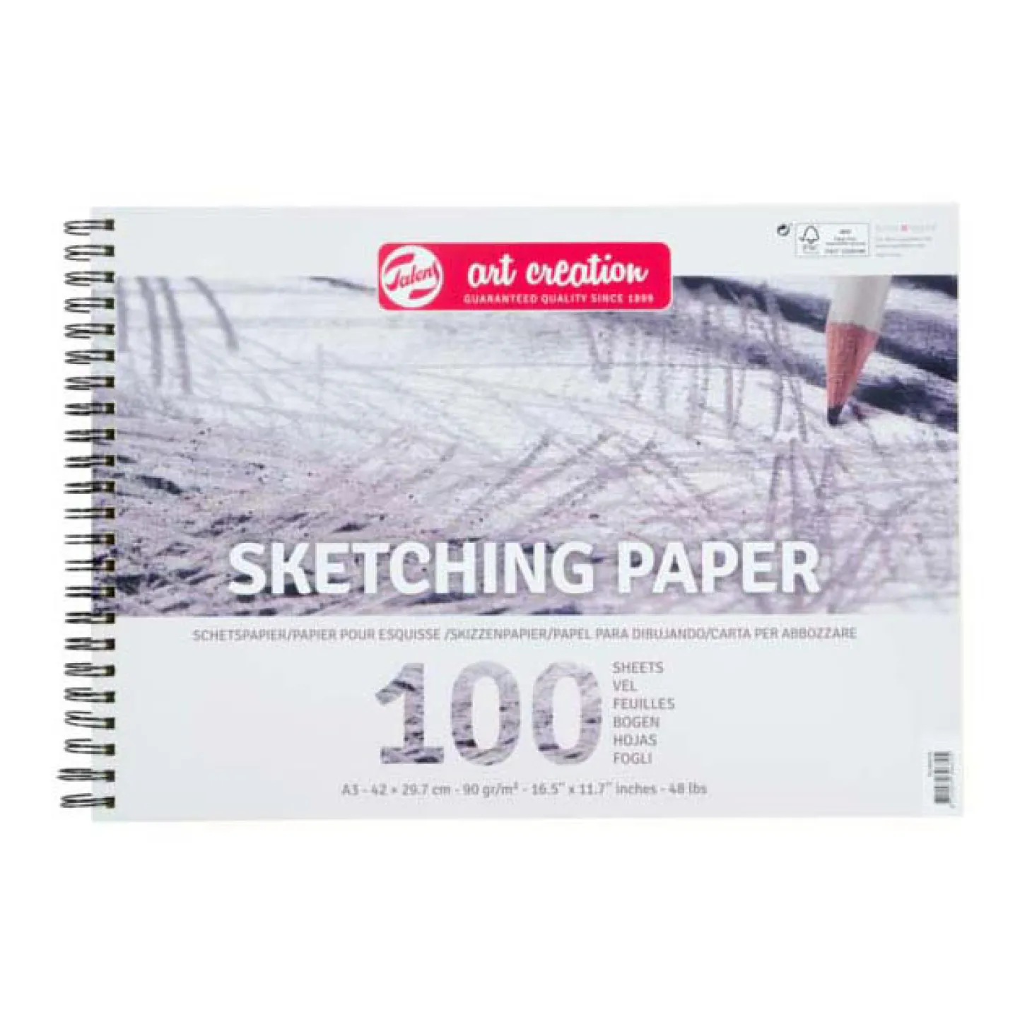 Talens Art Creation schetspapier is speciaal ontwikkeld om alles uit jouw schetsen te halen. Elk blok bevat 100 vellen A3 (42×29,7cm) microgeperst papier van 90 g/m². Het papier is een kant vastgelijmd zodat het perfect plat blijft tijdens gebruik en makkelijk te verwijderen is zodra je klaar bent met schilderen.