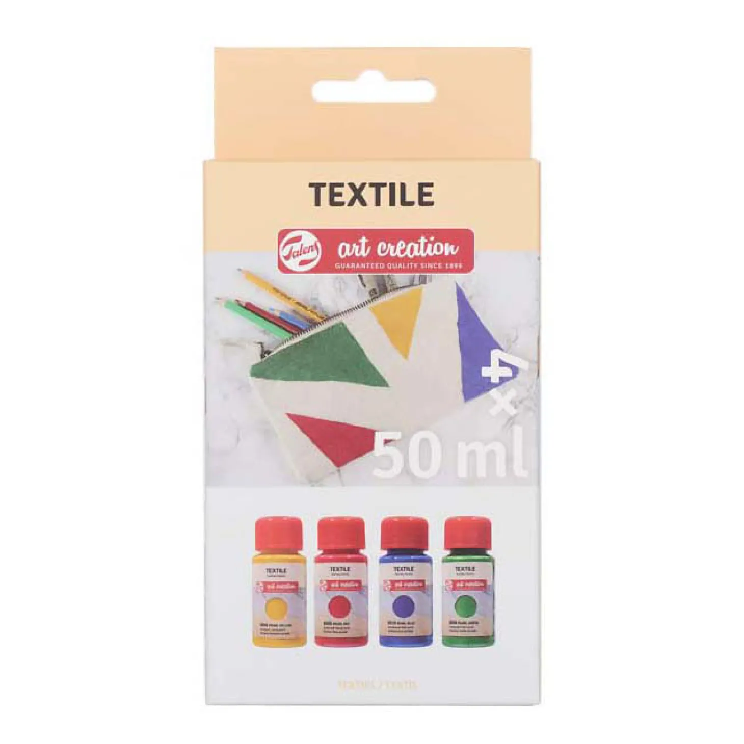 Upcycle kleding, accessoires of woondecoraties zoals kussenslopen, gordijnen en andere voorwerpen van textiel met Talens Art Creation Textiel verf! Deze set bevat 4 glinsterende parelmoertinten van Textiel verf voor lichtgekleurde stoffen (minstens 50% katoen). Veel plezier met het maken van je eigen ontwerpen op textiel!