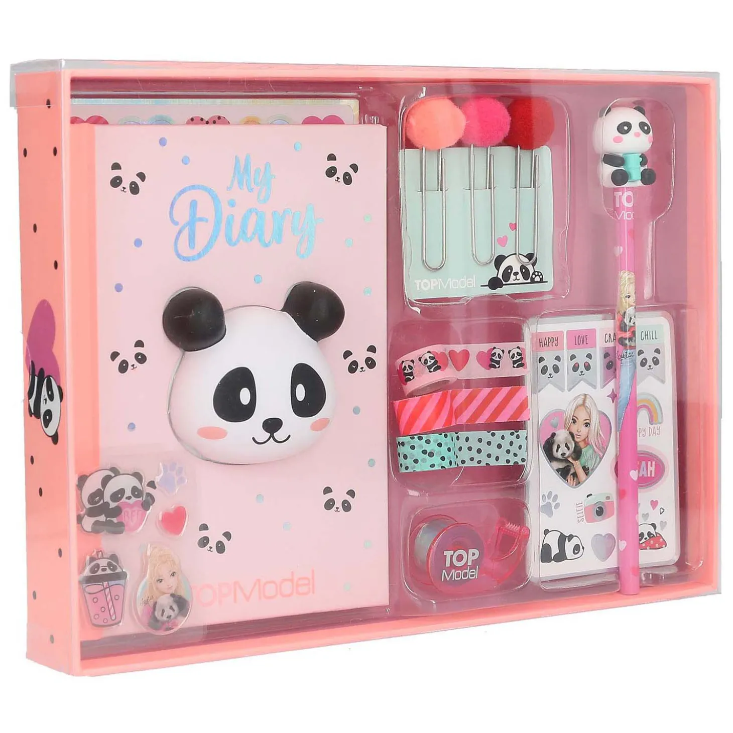 •Dagboek, 4 rollen tape met dispensers, 3 paperclips, 1 potlood, stickers