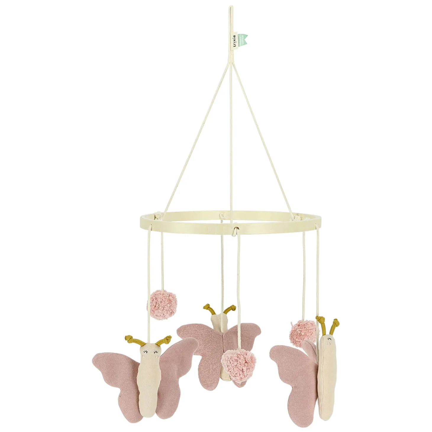 Het mobiel is verkrijgbaar in 3 verschillende dier- en kleurcombinaties. Het genuanceerde kleurenpalet is afgestemd op de Bliss collecties, zodat ouders deze reeks prachtig kunnen combineren tot een harmonieus geheel. De prachtige kleuren worden ondersteund door rijke gebreide texturen en de pompons en vormen zo een mooie toevoeging aan je interieur. Baby’s genieten van de verschillende texturen die ze met hun vingertjes kunnen ontdekken.