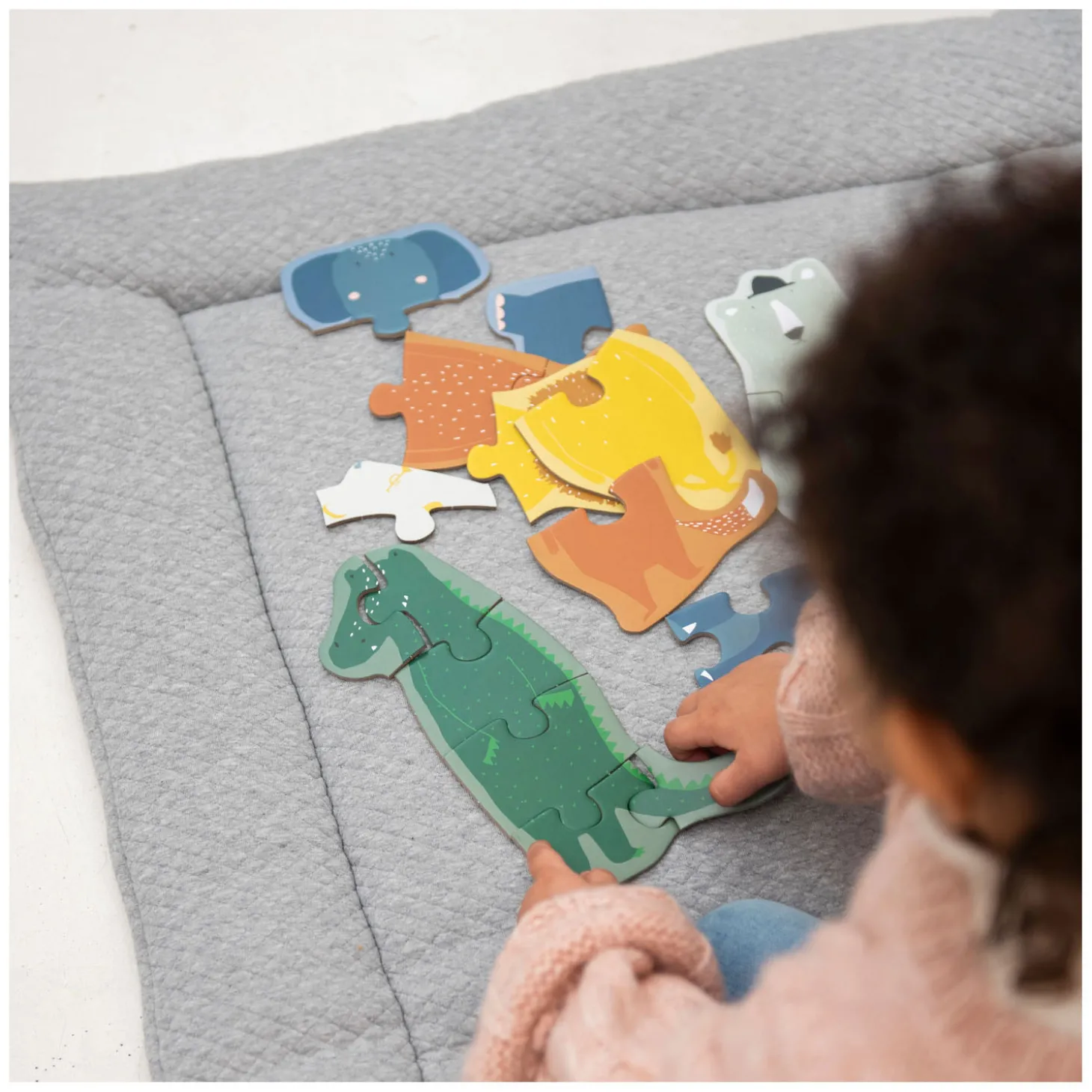 Vijf dierenvrienden om mee te spelen! Verzamel alle juiste puzzelstukken om de 5 verschillende dierenpuzzels te maken. Elke puzzel heeft een andere moeilijkheidsgraad, variërend van een 2-delige tot een 6-delige puzzel. Dit is de ideale set voor alle kleintjes die net puzzels beginnen te ontdekken! Dit spel is gemaakt van sterk FSC© karton en is bedrukt met soya inkt.