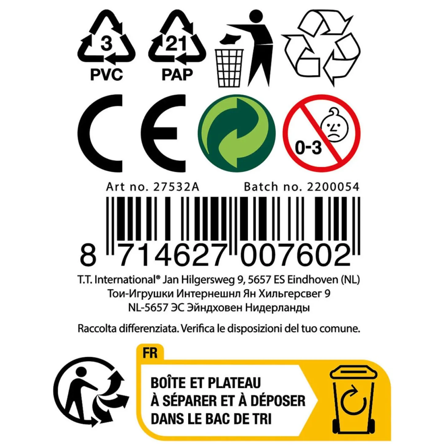 - Waarschuwing: Niet geschikt voor kinderen onder de 3 jaar ivm kleine onderdelen.