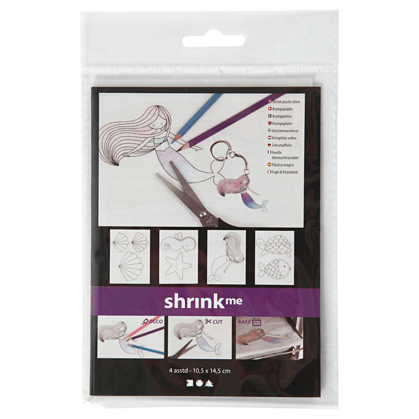 Vellen krimpfolie krimpen tot 40% in de oven. Het krimpproces is fascinerend om te bekijken, voor zowel kinderen als volwassenen. De kleine kunstwerken kunnen vervolgens worden gebruikt om de kinderkamer te decoreren, of als zelfgemaakt cadeau worden gegeven aan grootouders.