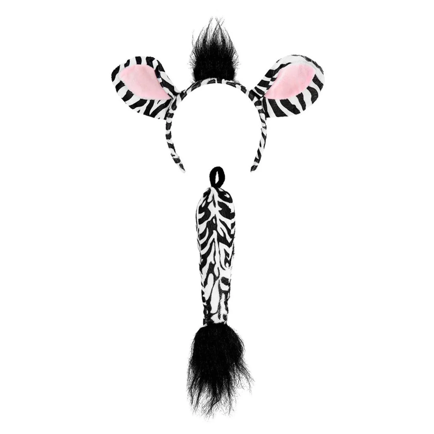 Verkleedset zebra bestaande uit een haarband met oren en een staart.