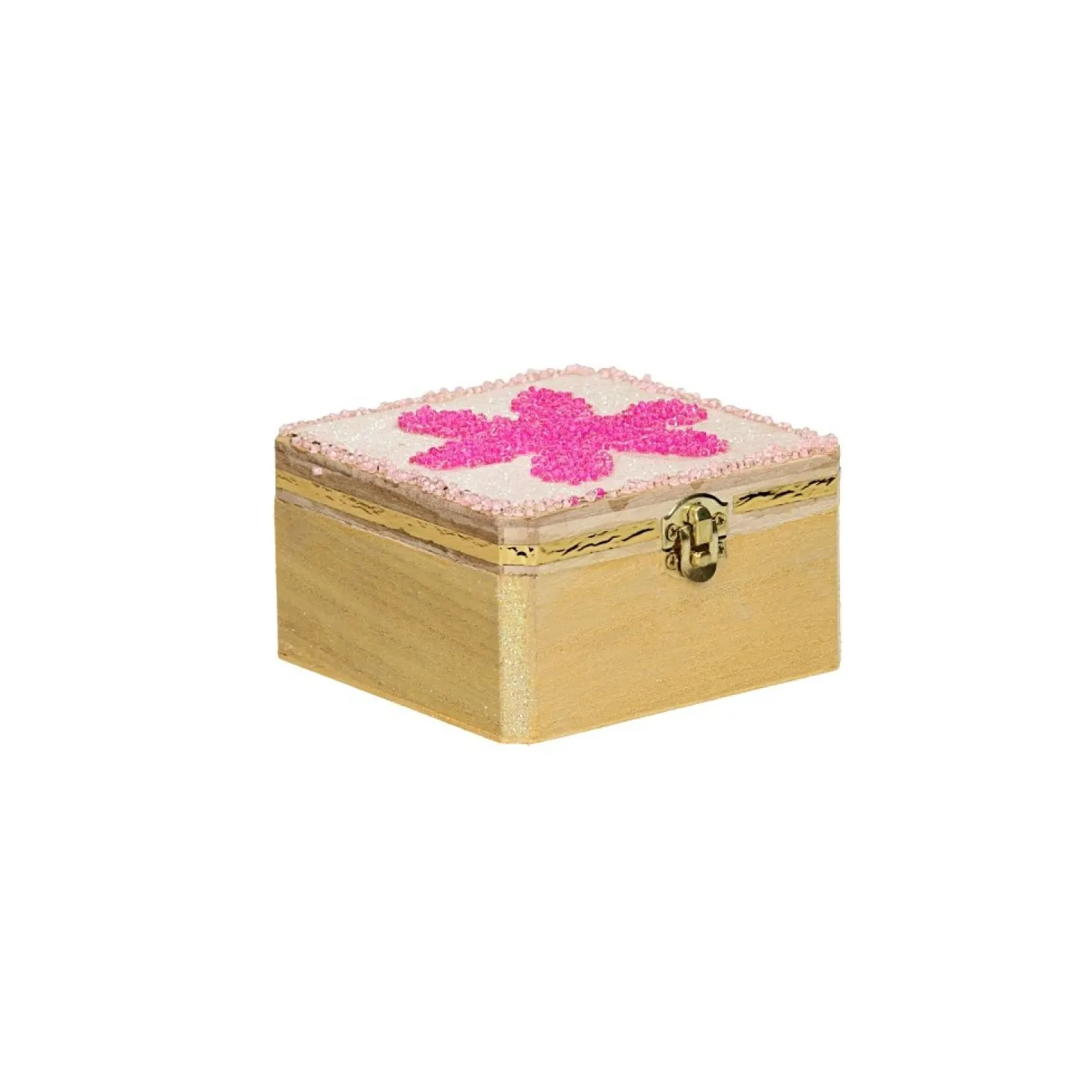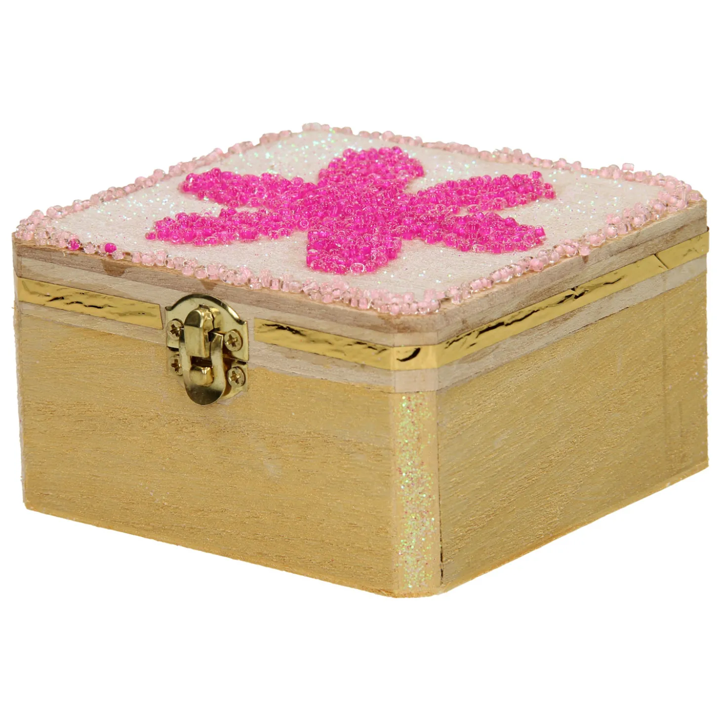 Versier je eigen sieradenkistje van hout met de mooiste kleuren! Het kistje heeft een goudkleurige sluiting. Exclusief versieringsspullen.