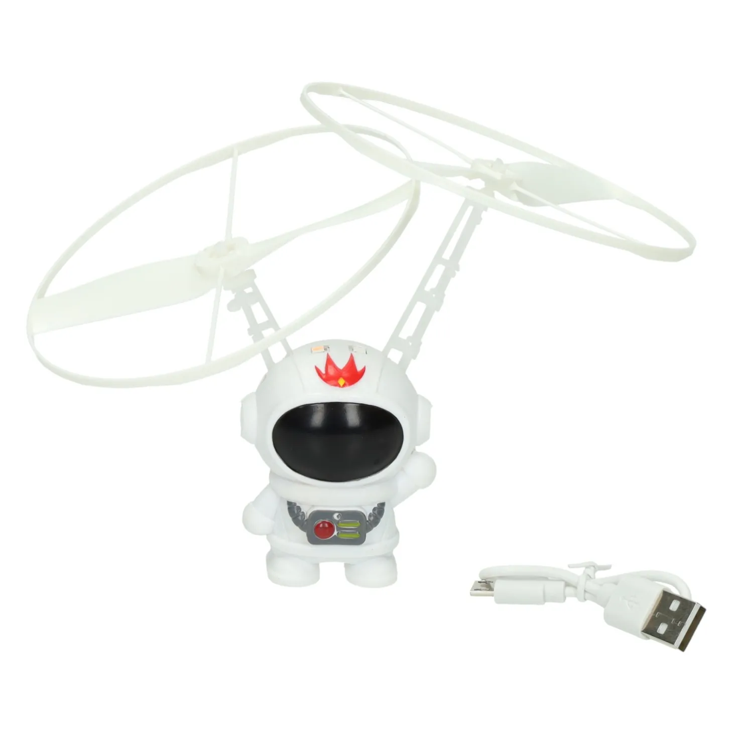 • Vliegende astronaut met ronddraaiende propellers