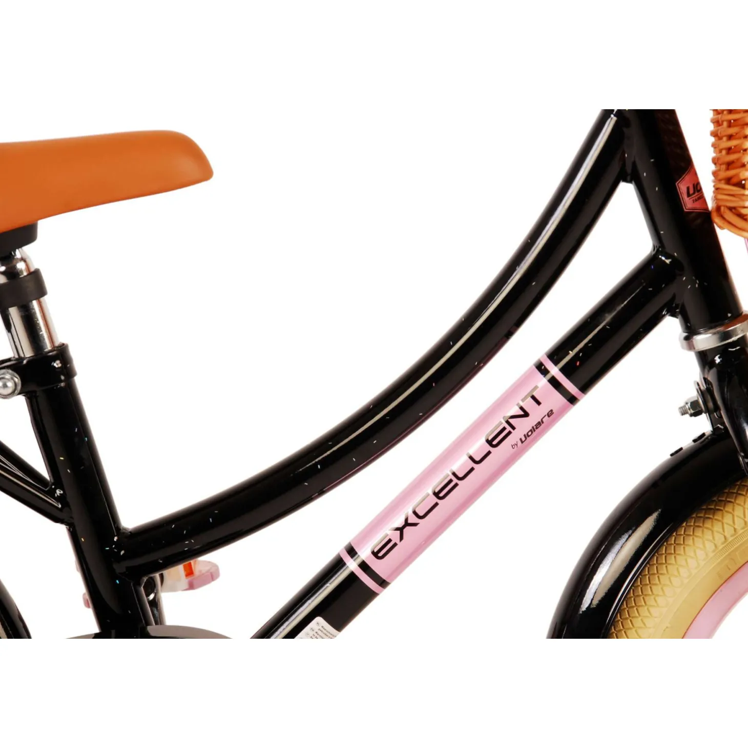Veiligheid staat voorop! Daarom heeft deze gave fiets een handrem en terugtraprem, afneembare zijwieltjes en een gesloten kettingkast. Daarnaast heeft de fiets reflectoren achter en een leuke bel. Ook aan het comfort is gedacht. De mooie zwarte Volare fiets heeft een handige achterdrager, een luxe zacht zadel en een handig rieten mandje. Om zo lang mogelijk van de fiets te kunnen genieten zijn het zadel en stuur in hoogte verstelbaar. Wordt geleverd inclusief al het montagemateriaal dat nodig is om de fiets in elkaar te zetten!