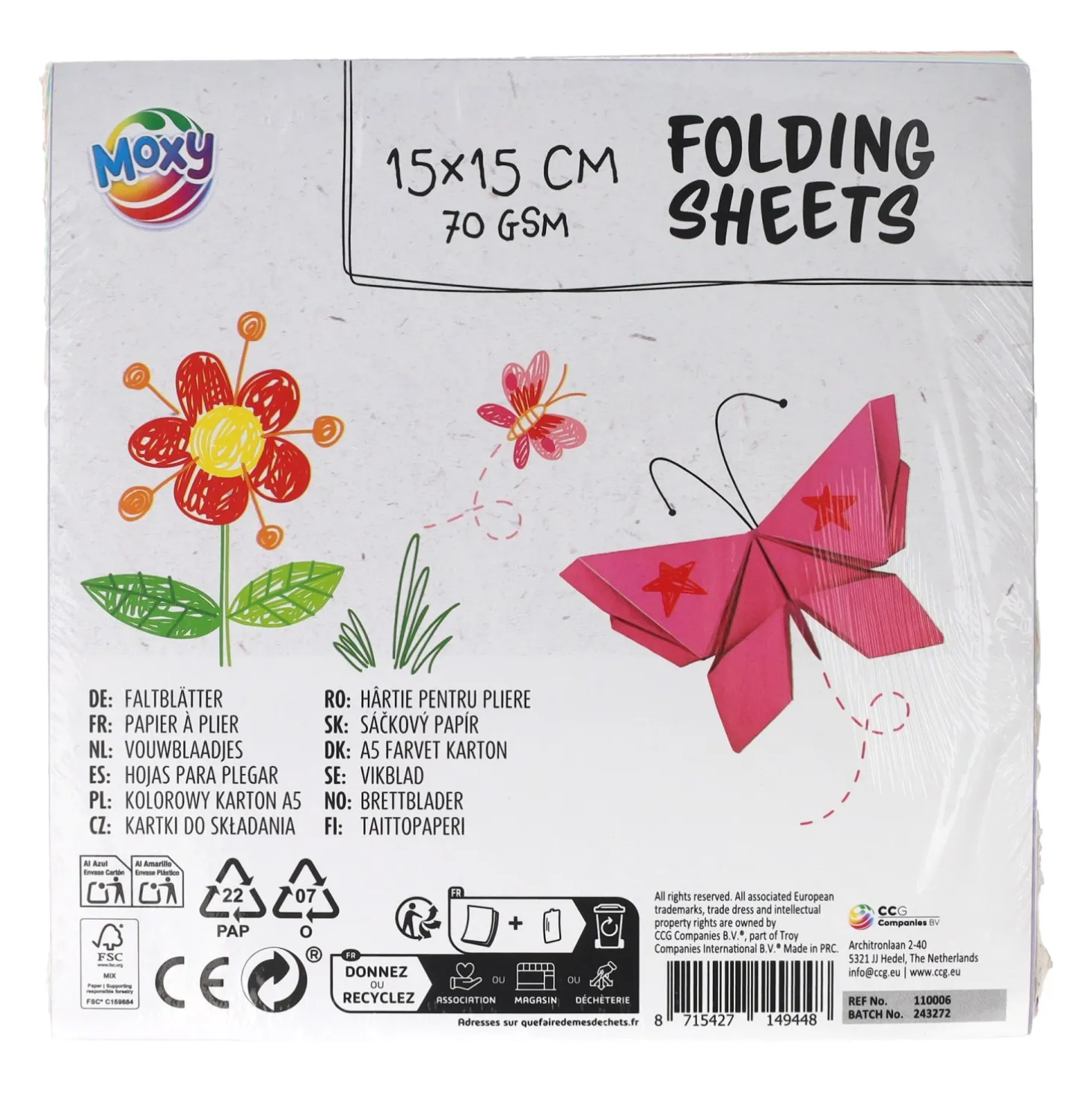 Set van 120 gekleurde vouwblaadjes van 15 x 15 cm. De vellen zijn van 70 gsm papier.