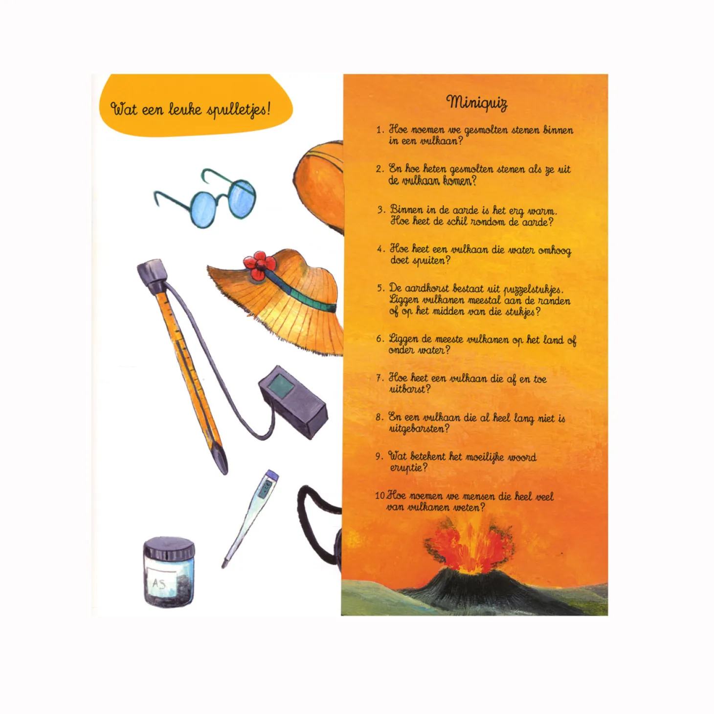 Wil je alles weten over vulkanen? In dit boek vind je de antwoorden op al je vragen. Hoe ontstaan bergen en vulkanen? Hoe werken ze? Wat is het verschil tussen magma en lava? Zijn er vulkanen op Mars? En waarom zijn vulkanen zo gevaarlijk? Je vindt in dit boek ook een grappig stripverhaal, leuke opdrachten, een grote uitklappagina en een miniquiz, zodat je een echte expert wordt.