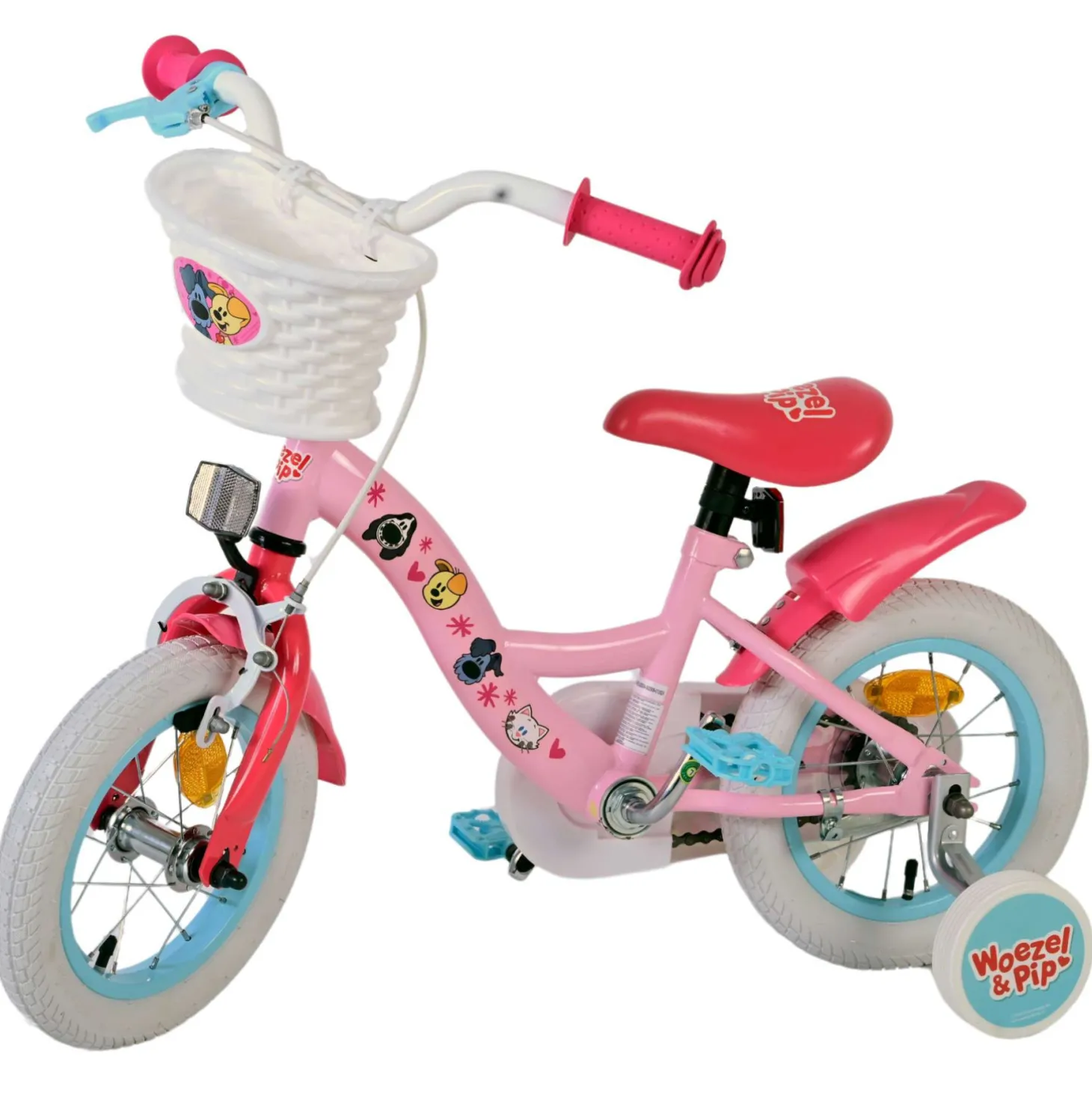 Veiligheid staat voorop! Daarom heeft deze gave fiets een handrem, een terugtraprem, gesloten kettingkast en afneembare zijwieltjes. De mooie roze Woezel & Pip fiets met blauwe accenten heeft een comfortabel zacht zadel en super stevig frame. Om zo lang mogelijk van de fiets te kunnen genieten zijn het zadel en stuur in hoogte verstelbaar.Â